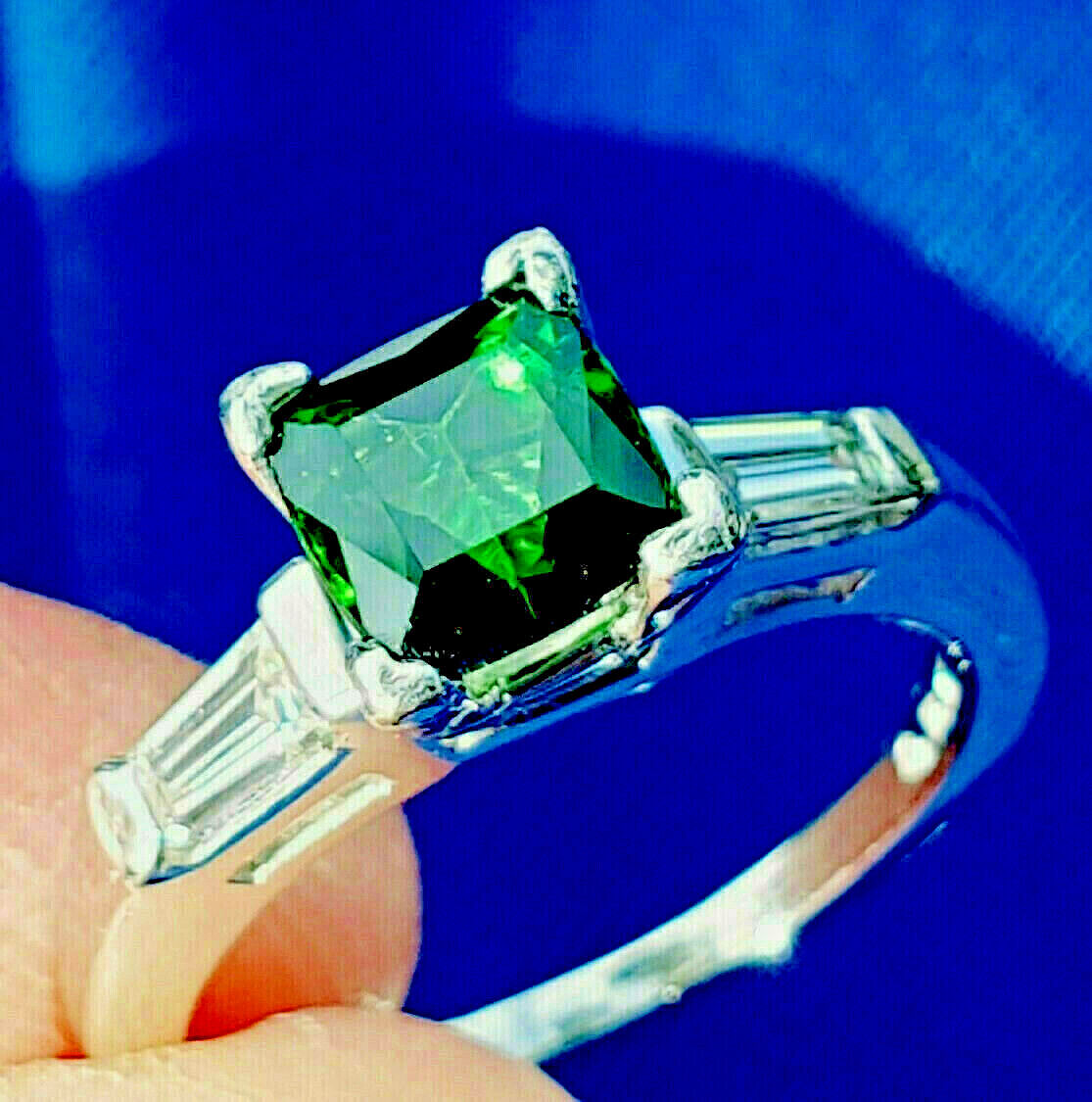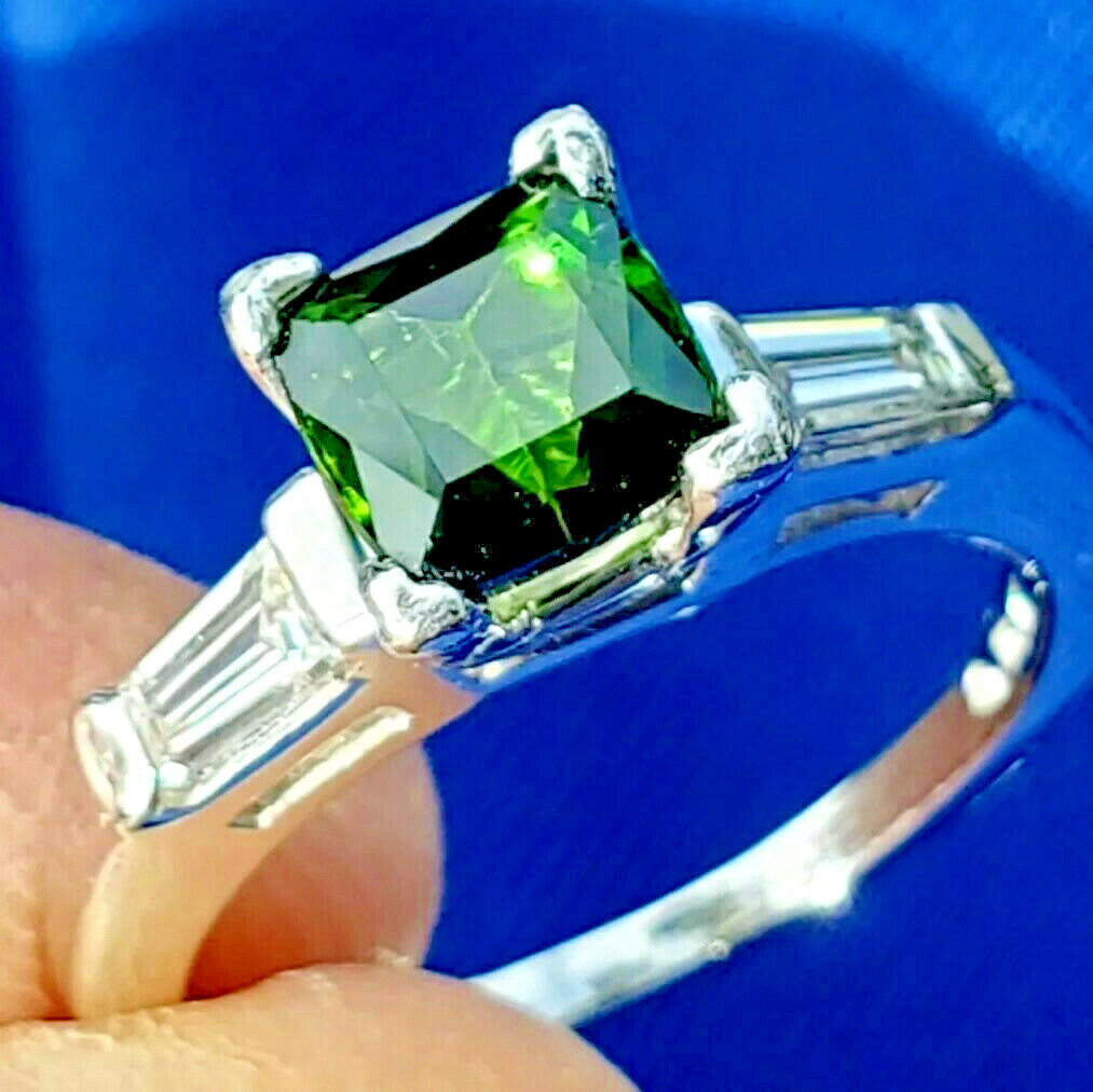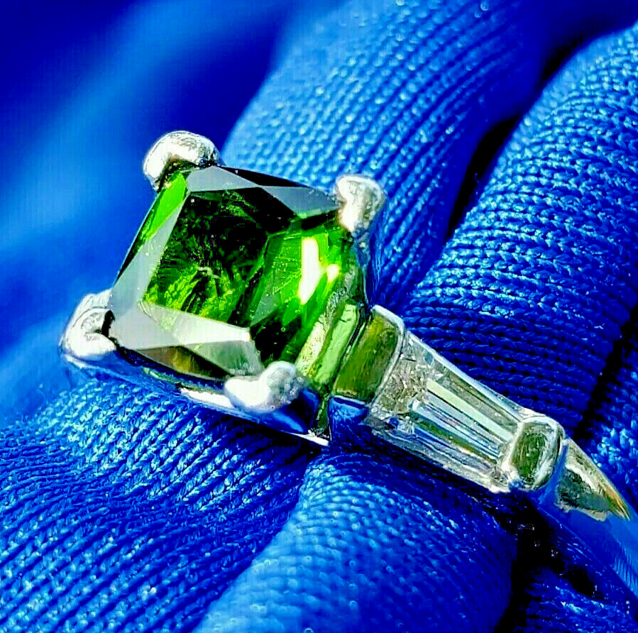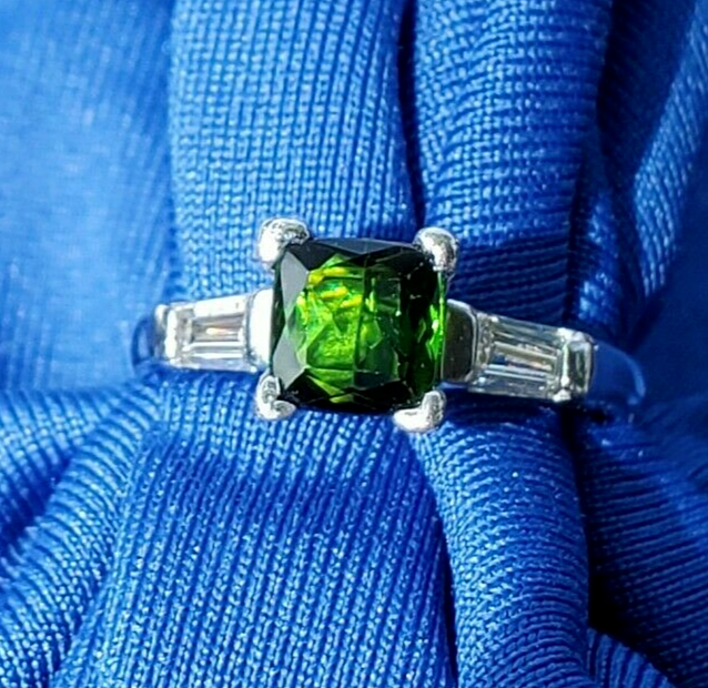 Earth mined Tourmaline Diamonds Deco Engagement Ring Platinum Solitaire Bridal