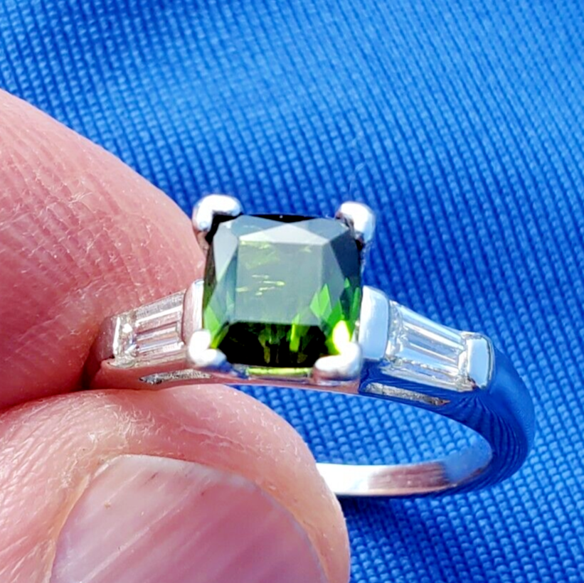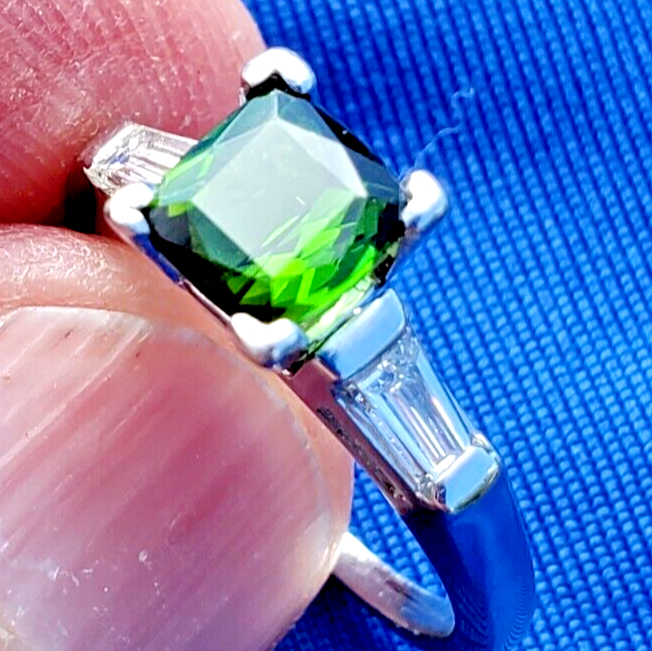 TOURMALINE DIAMOND PLATINUM ENGAGEMENT STATEMENT RING.