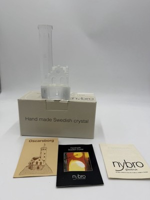 Nybro crystal Sweden votive candle holder Oscarsborg watch tower Box /COA