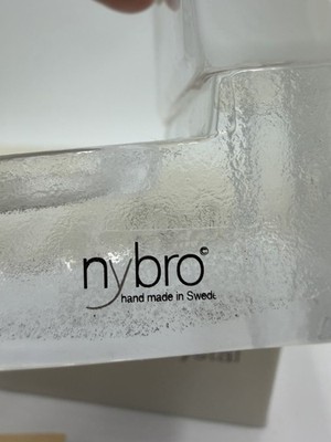 The Nybro crystal Sweden votive candle holder features a clear crystal material with a building pattern, specifically designed in the shape of the Oscarsborg watch tower in Sweden. This candle holder, measuring 6 inches in height, comes in a box packaging and is suitable for holding votive candles. The brand Nybro is known for its high-quality glassware, making this piece a unique and elegant addition to any home decor collection.