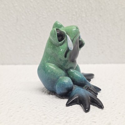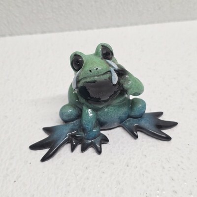 Kitty's Critters Miss You Blue Green Frog Figurine Sad Tears. Images show actual item that will ship.