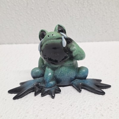 Kitty's Critters Miss You Blue Green Frog Figurine Sad Tears