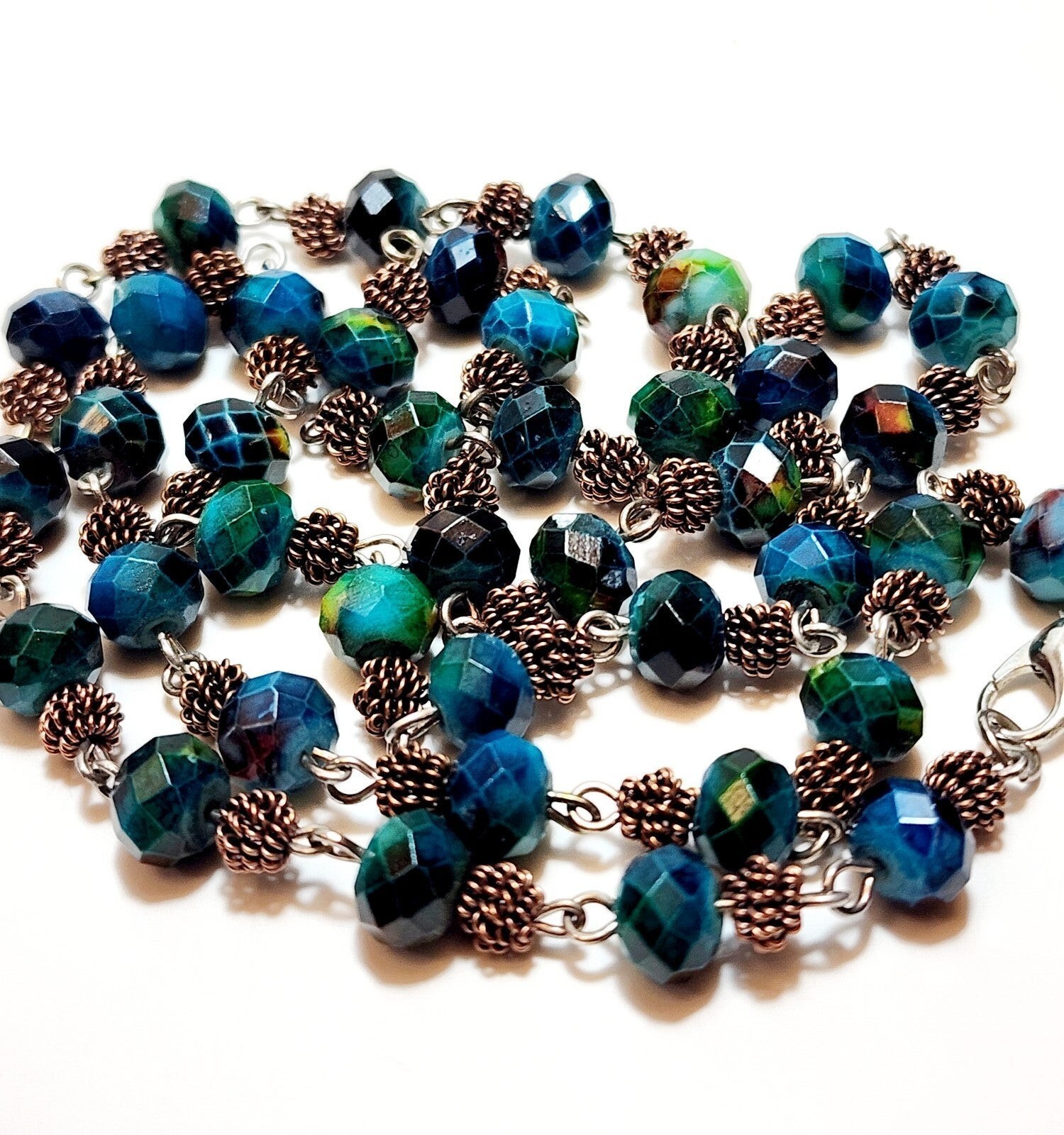 Vintage Aqua Geometric Bead Necklace Costume Handmade B66 Maine