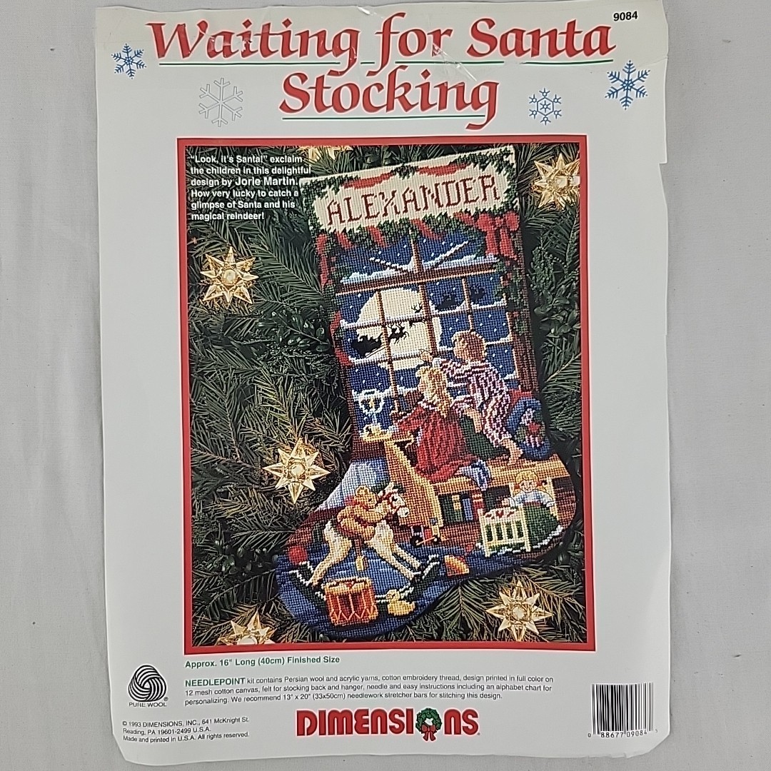 Waiting for Santa Needlepoint Stocking Kit Dimensions 9084 XMAS 1993 Made USA