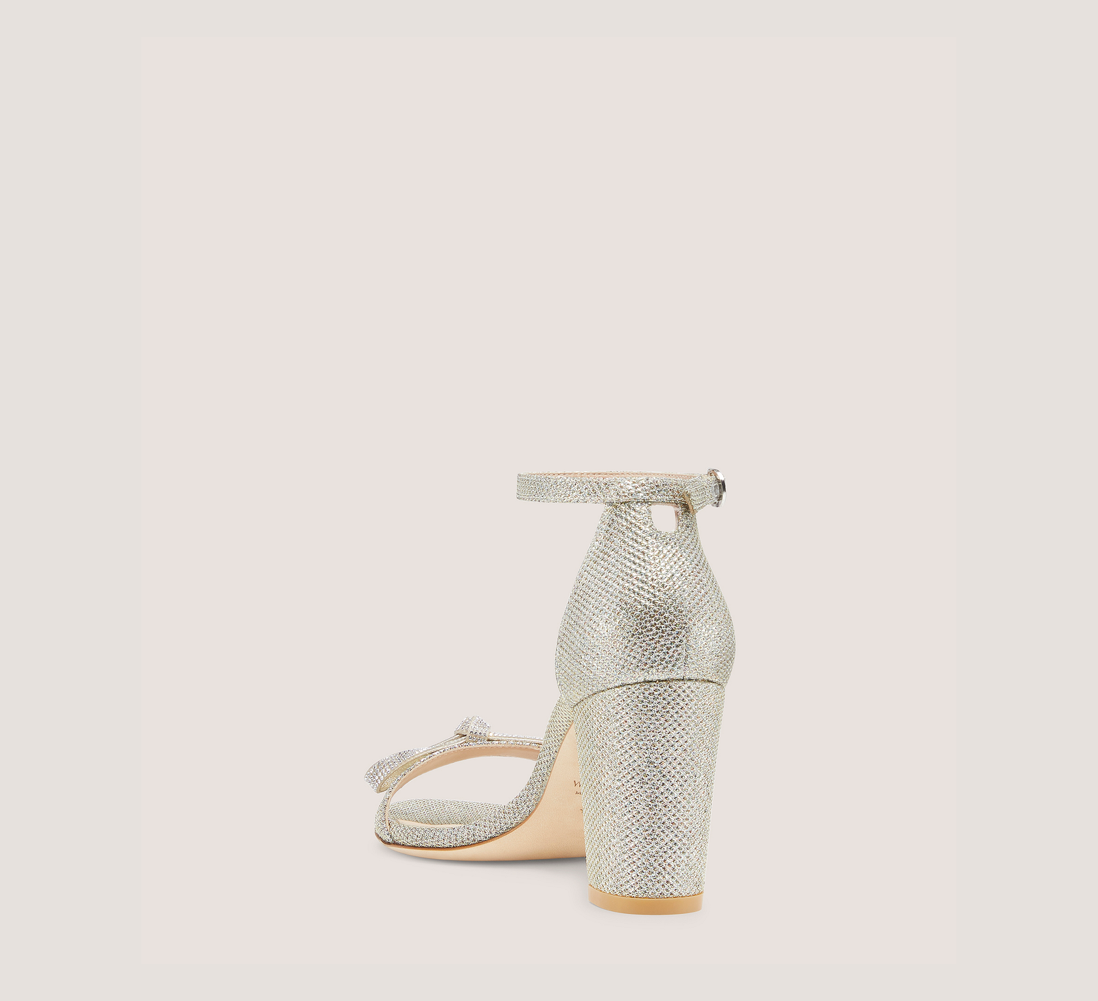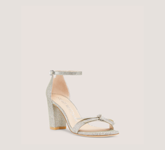 Stuart Weitzman Nearly Nude Crystal Embellished Bow Sandal 6.5M Platino Gold New