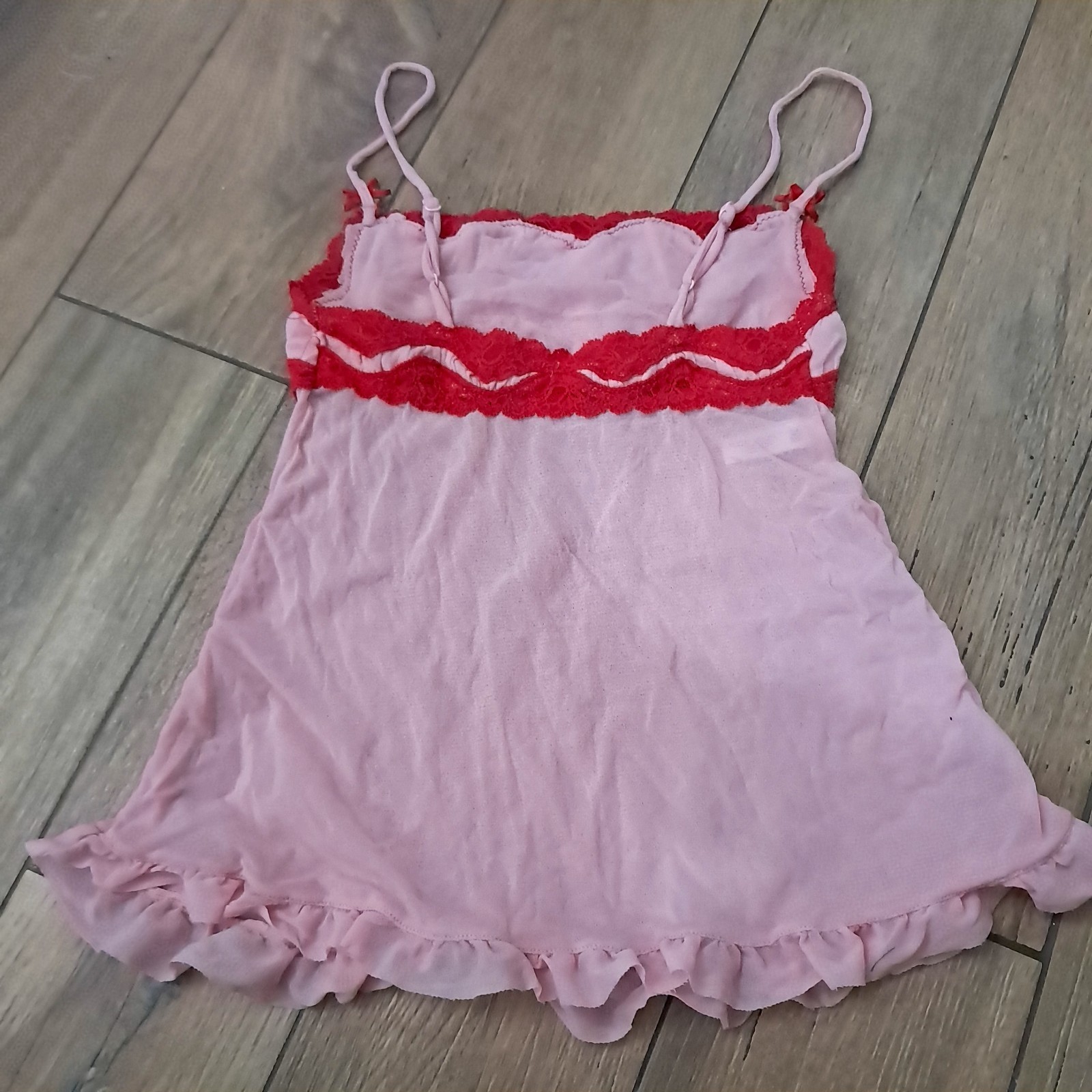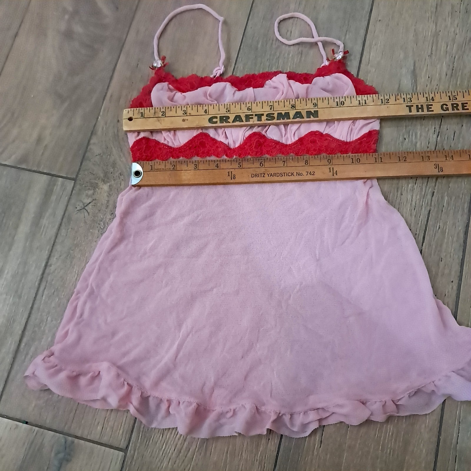 Victoria’s Secret Angels sz XS Cami Babydoll Pink red lace Top sheer mesh Y2K