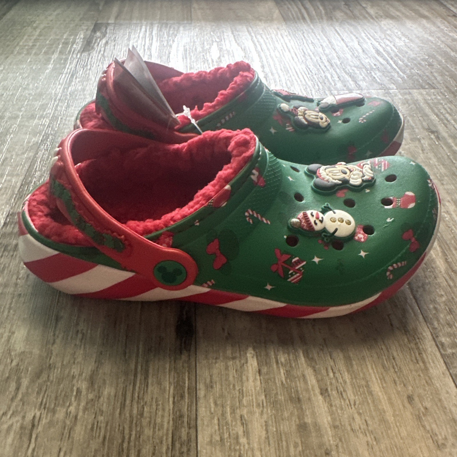 Disney Parks Mickey Mouse & Minnie Crocs Christmas Fur Lined Clogs Size J3
