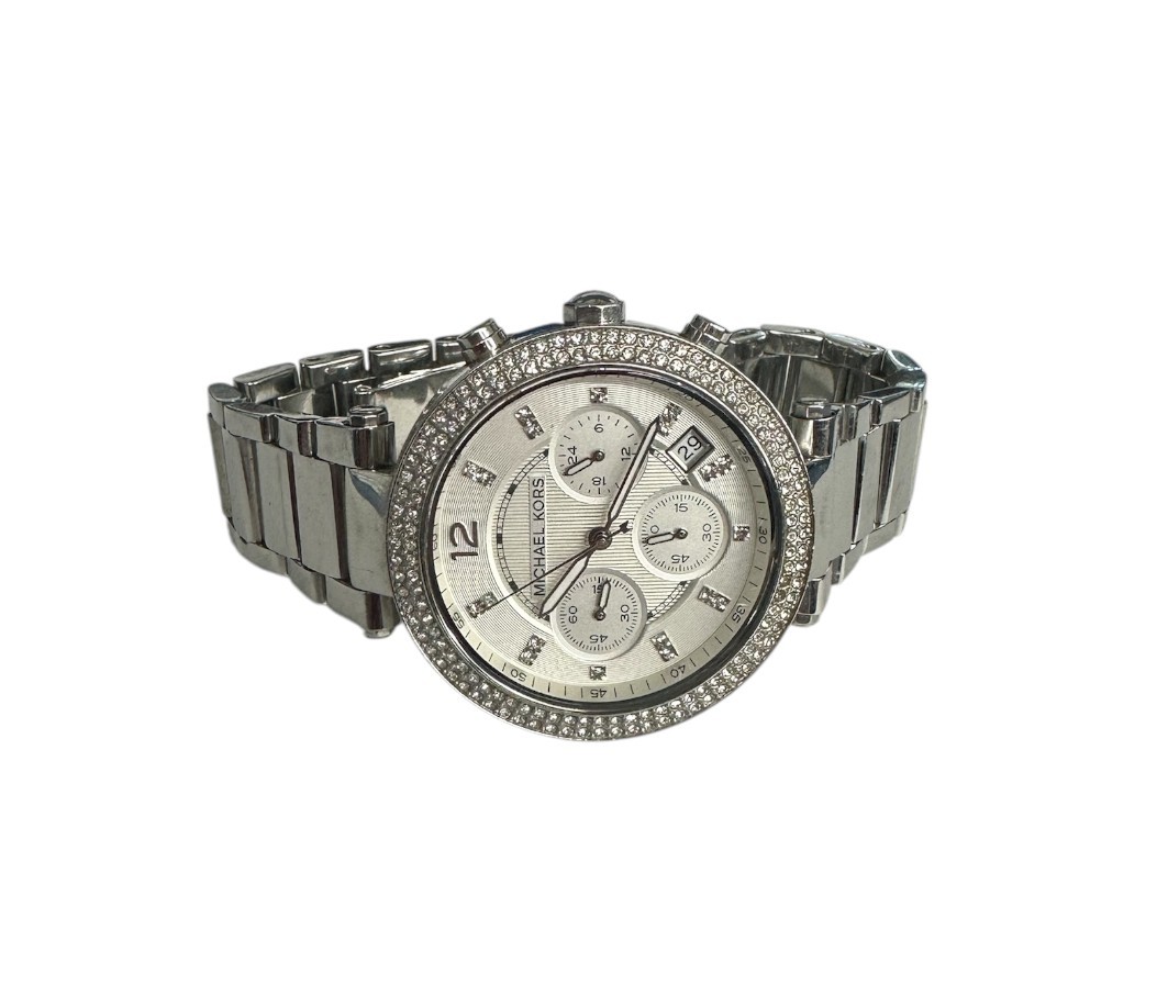Type: Wrist watchBrand: Michael KorsModel number: mk-5353Case width: 40Weight: 78.8Movement type: Quartz (Battery)Case Material: Stainless SteelBox included: noPaperwork included: noRunning: yesDial color: whiteBand material: Stainless SteelBezel Material: Stainless SteelStone Quantity: 150Stone Shape: RoundStone Color: ClearStone Carat Total: 1.50Stone Type: Cubic ZirconiaCondition:Used
