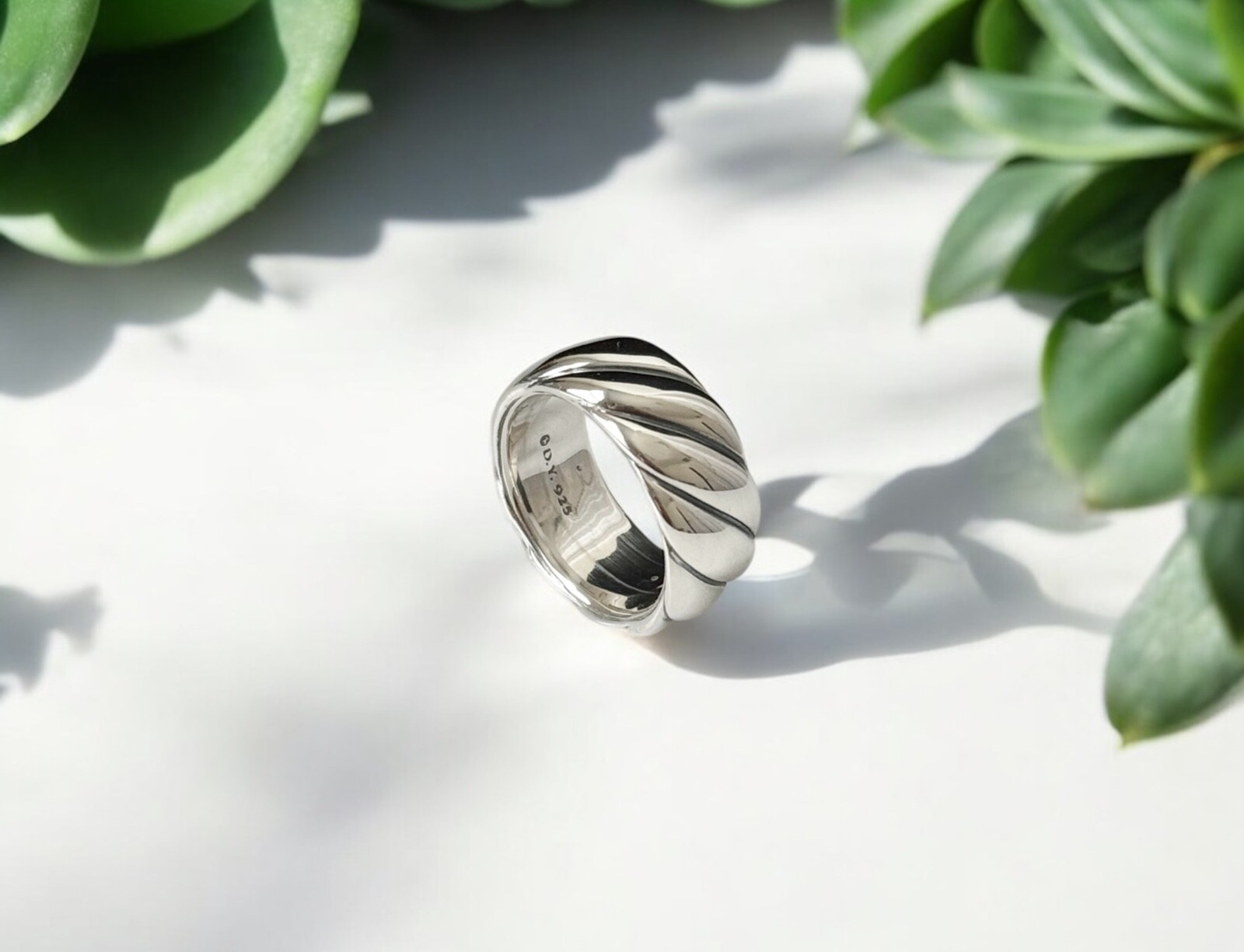 David Yurman 925 Sterling Silver Sculpted Cable Contour Unisex Band Ring Size 8