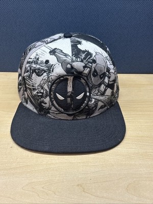 Marvel Deadpool comic art snapback hat black and white. Used in good condition