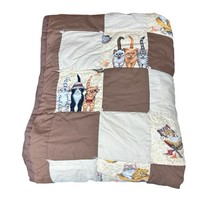 Vintage Hand Made Quilt Patchwork Squares Cat Kittens Theme Brown Cream