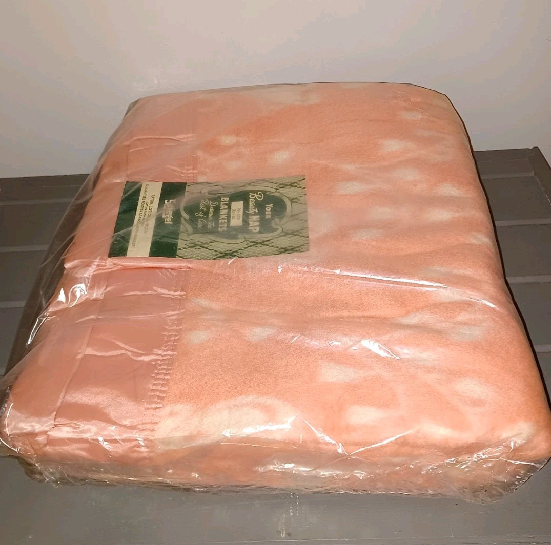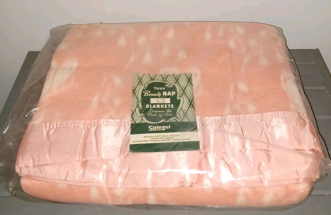 New Old Stock Spiegel Beauty Nap Blanket Pink Vintage 72 x 84" Double Satin Trim