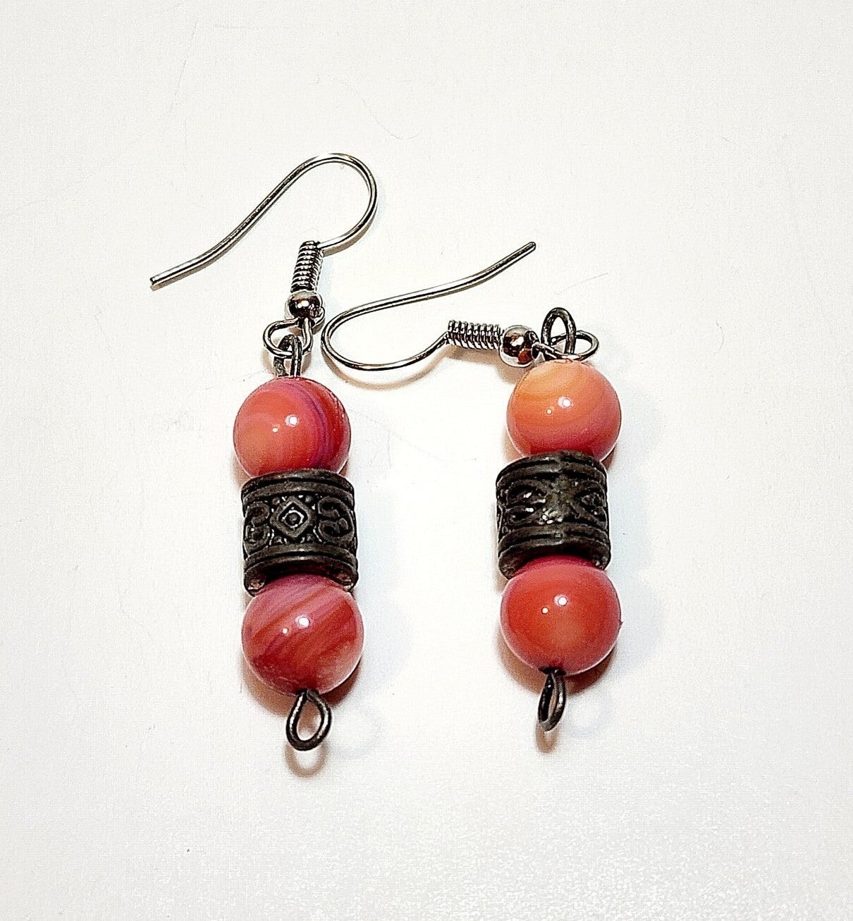Vintage Rose Bead Earrings Costume Handmade 3 Tier B66 Maine