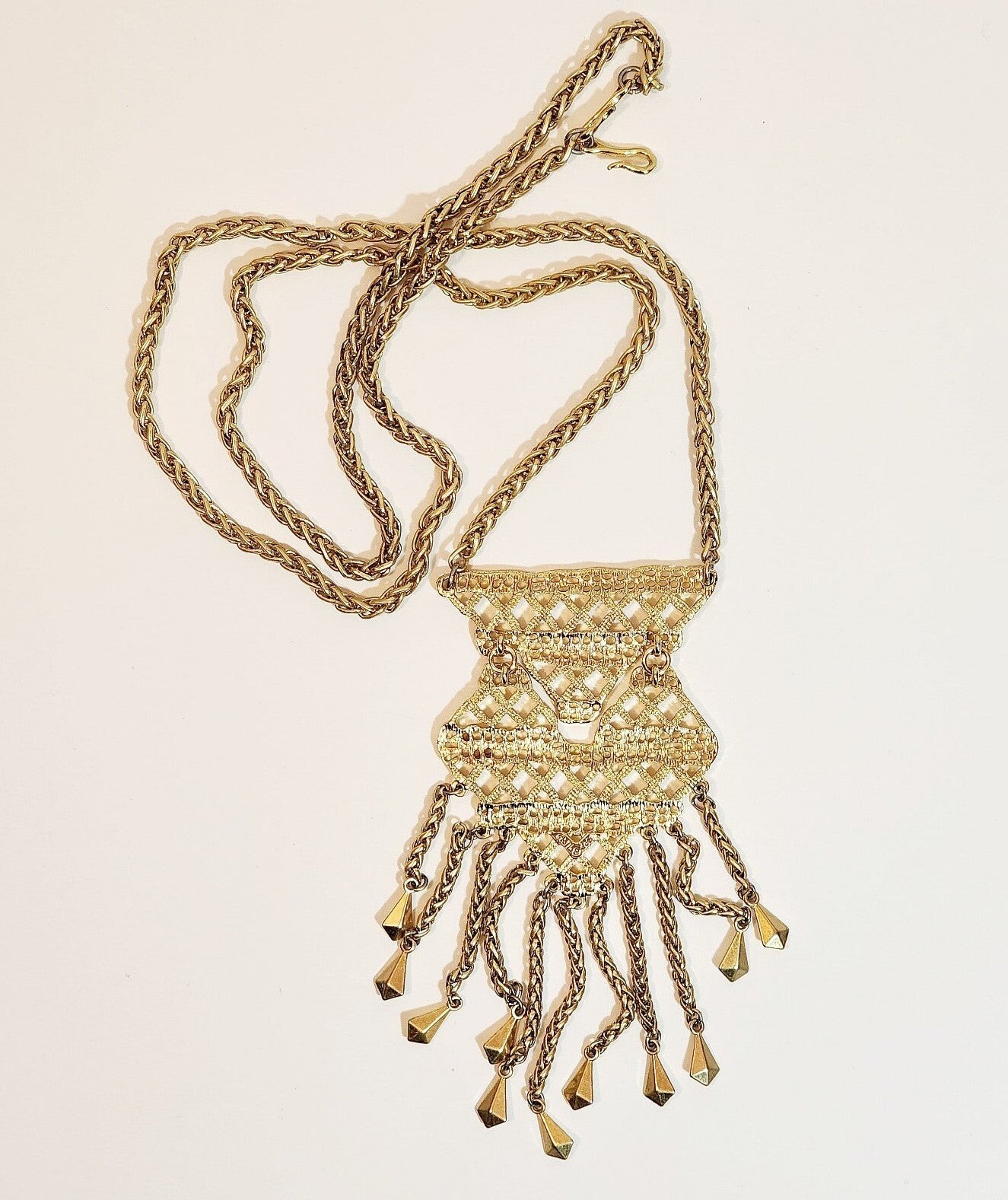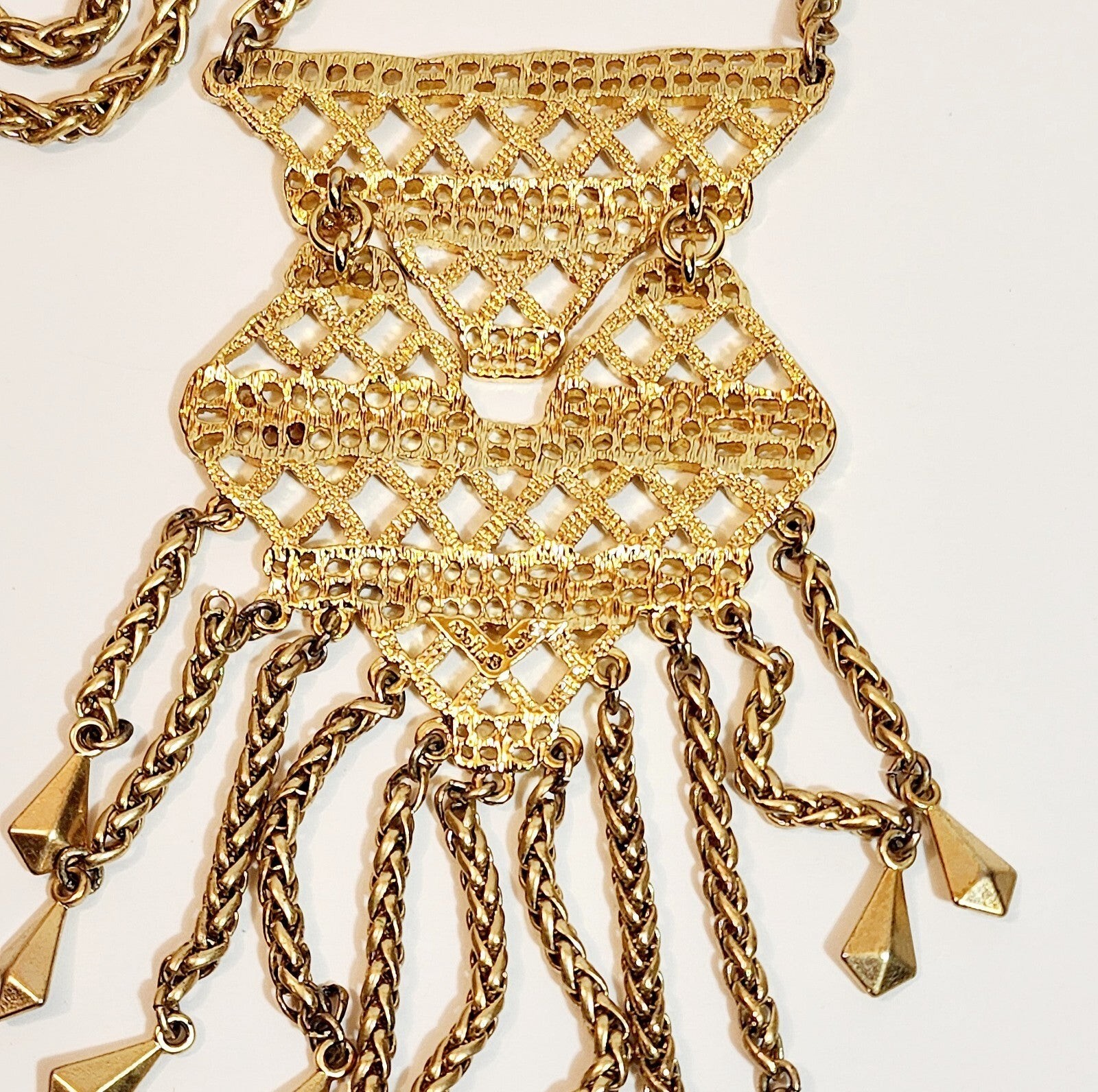 Stella and Dot Vintage Gold Colored XL Pendant Mini Bib Necklace Costume Jewelry
