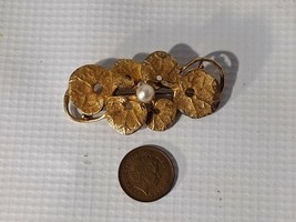 Kramer Gold Cold Plated Water Lily Leaves Pin Brooch with Pearl Signed