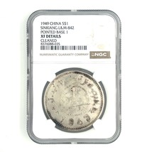 1949 China S$1 Dolar Sinkiang L M-842 Puntiagudo Base 1 por NGC como DETALLES XF