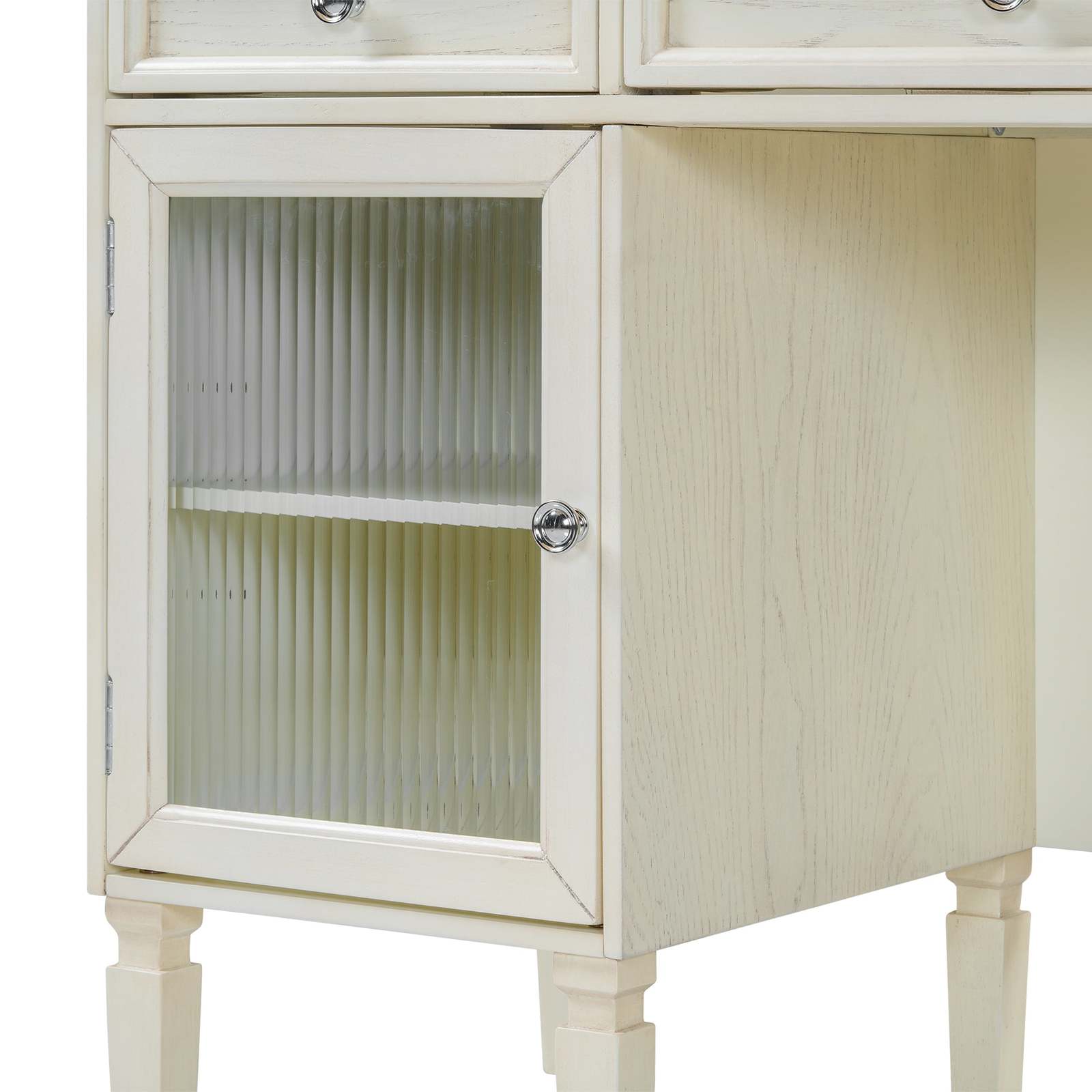 Ample Storage for Organization: Elevate your organizational game with this functional desk. It includes hidden storage compartments, two side drawers, and two large cabinets with adjustable partitions. This vanity is perfect to keep the beauty essentials neat and tidy, providing ample space for makeup, jewelry, and more.