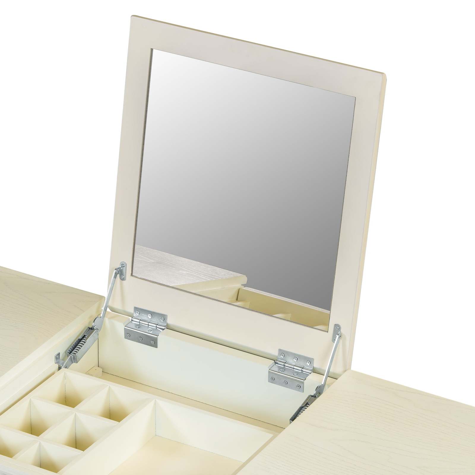 Comfortable Stylish Stool Included: This vanity set comes with a matching stool made of solid wood. The soft padded seat is upholstered with easy-to-clean light grey fabric, making it compact, comfortable, and sturdy. This stool adds a stylish touch to your vanity set and ensures comfort during your beauty routine.