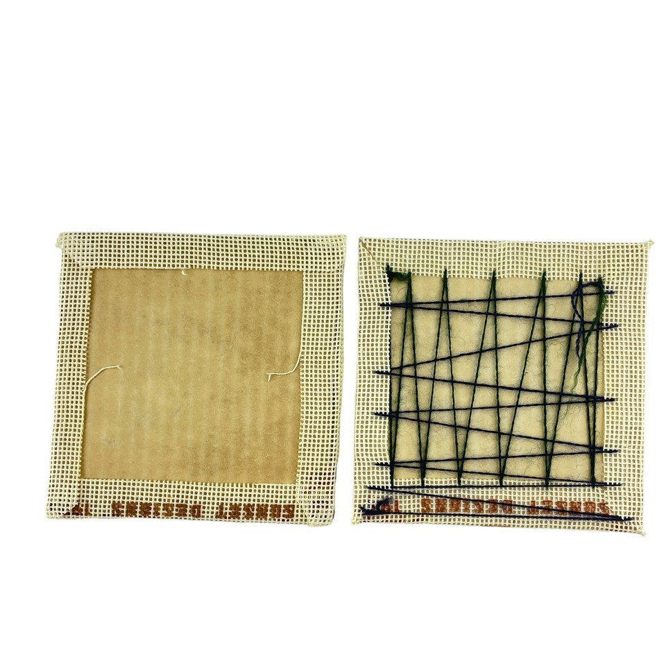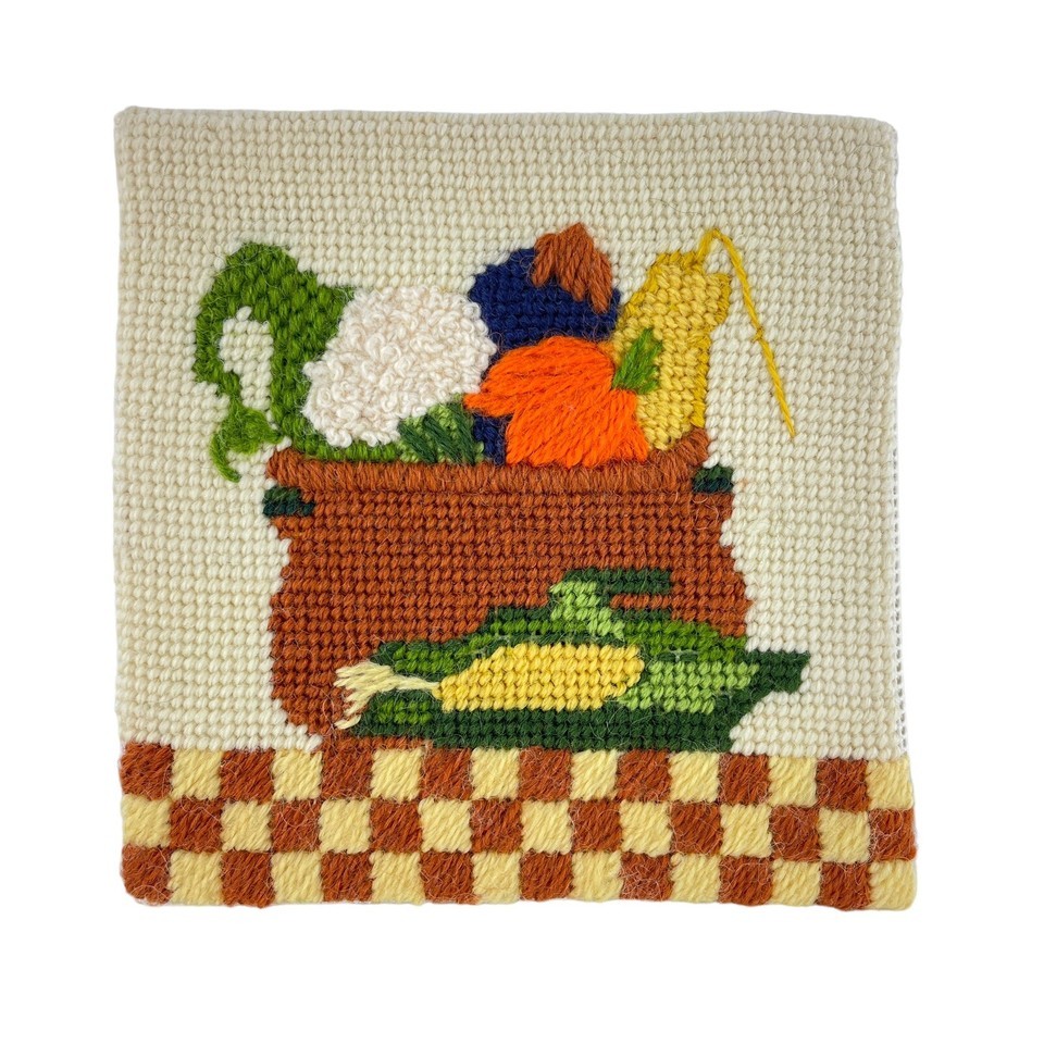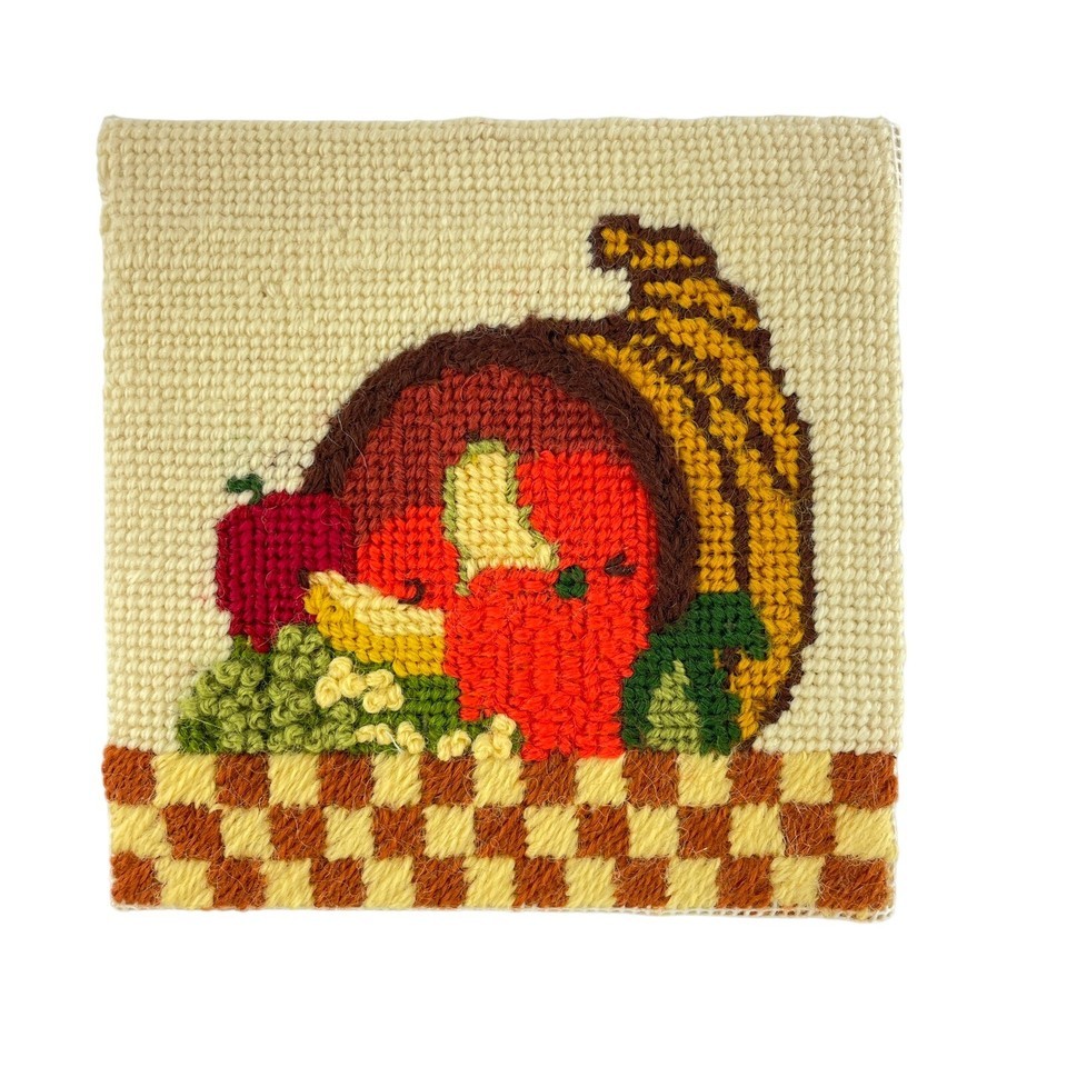 Sunset Finished Cross Stitch Thanksgiving Harvest Lot of 2 5"x5" Cornucopia 70s