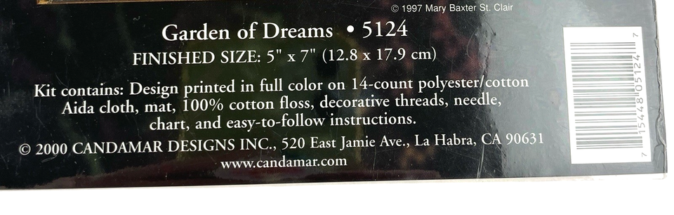 Candamar Cross Stitch Mary Baxter St. Claire Garden of Dream Kit 5124