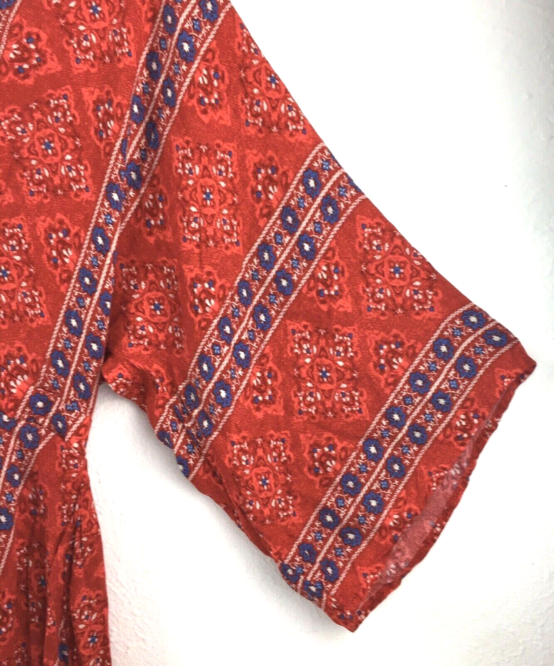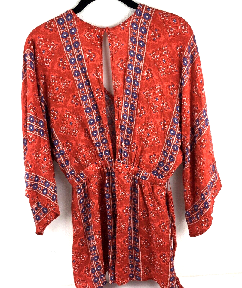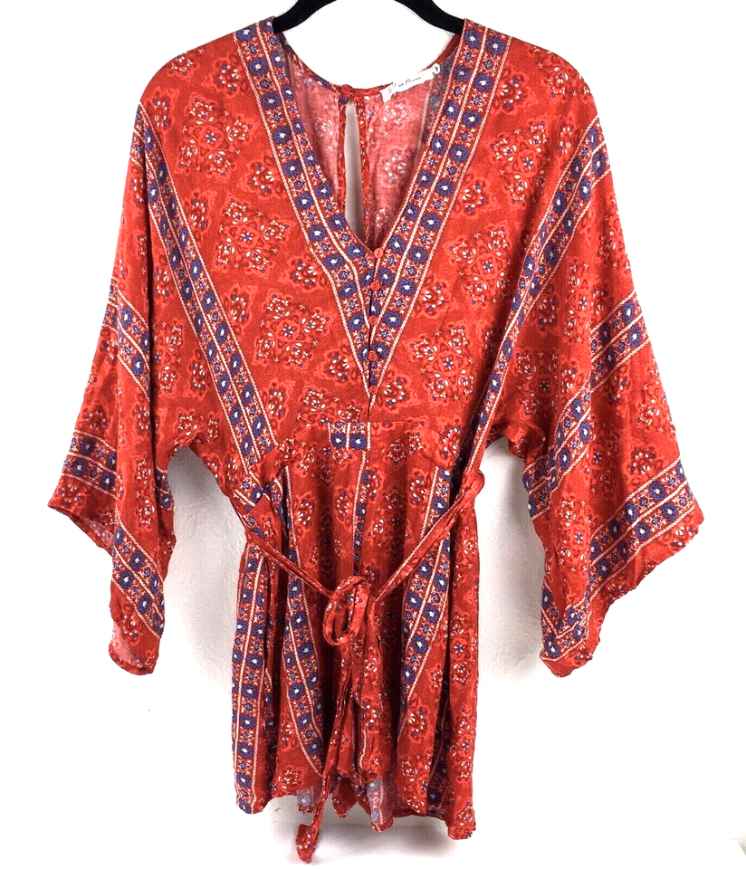 Nordstrom Red Romper All in Favor Small Ikat Floral V-neck Kimono Sleeve