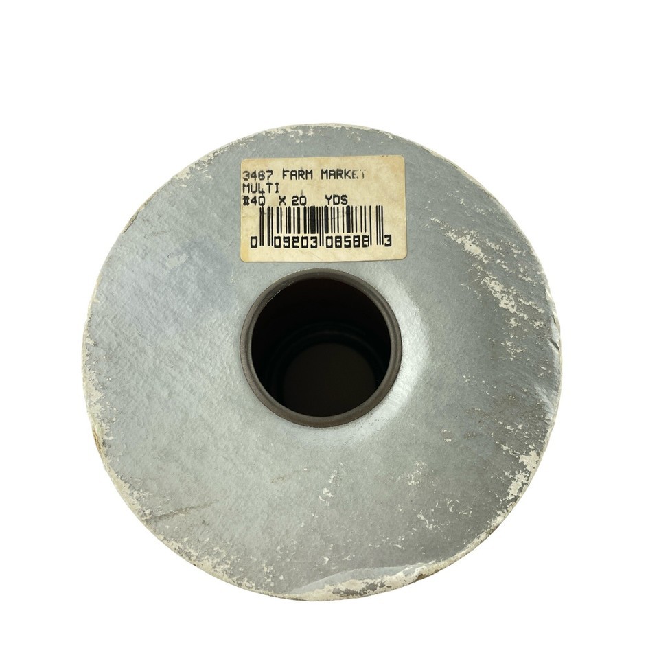 This McGinley Mills ribbon spool features a charming farm market design, perfect for crafting and DIY projects. Measuring 2.5 inches in width, this cotton blend ribbon is durable and versatile. The blue orange and red colors add a pop of color to any project, and the printed design is sure to impress.