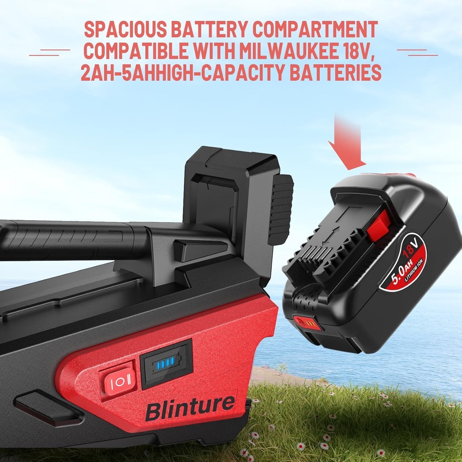 Blinture's specially enlarged battery compartment accommodates up to 5Ah(Even 8Ah can be used, but the battery compartment cover cannot be completely closed) Milwaukee high-capacity batteries, offering a battery life of up to 4 hours. In contrast, other powered water pumps support only 2Ah batteries, with a battery life of approximately 30 minutes