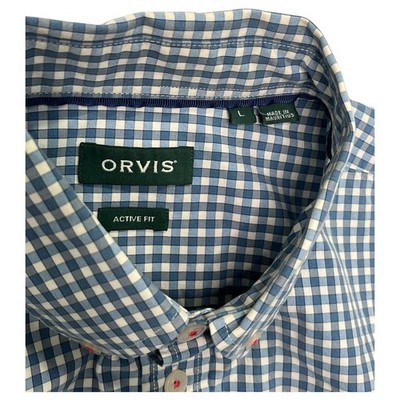 Orvis Shirt Mens Large Blue White Gingham Button Down Active Fit Classic Style