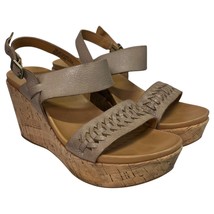 Kork Ease Sandals Womens 7 Tan Leather Wedge Austin Braid Cork Espadrille Beach