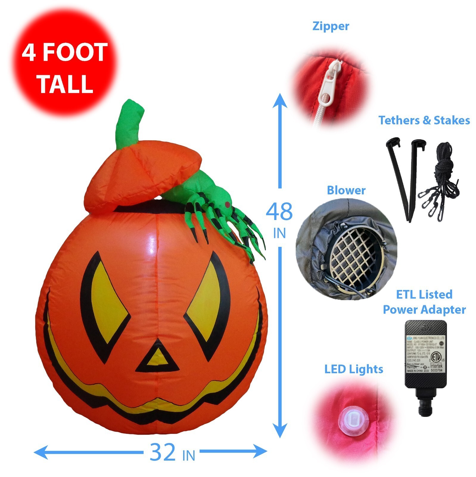 4 Foot Tall Halloween Inflatable Lighted Pumpkin Jack-O-Lanterns with Spider Yard Garden Outdoor Decoration