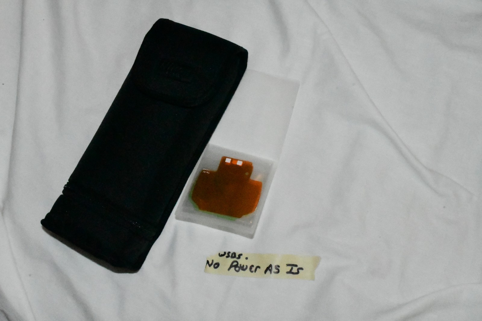 OBTAINED FROM A CLIENT WHO OBTAINED IT FROM A FAMILY MEMBER WORKING, THAT CLIENT LEFT THE BATTERIES IN IT TOO LONG AND THE BATTERIES LEAKED.