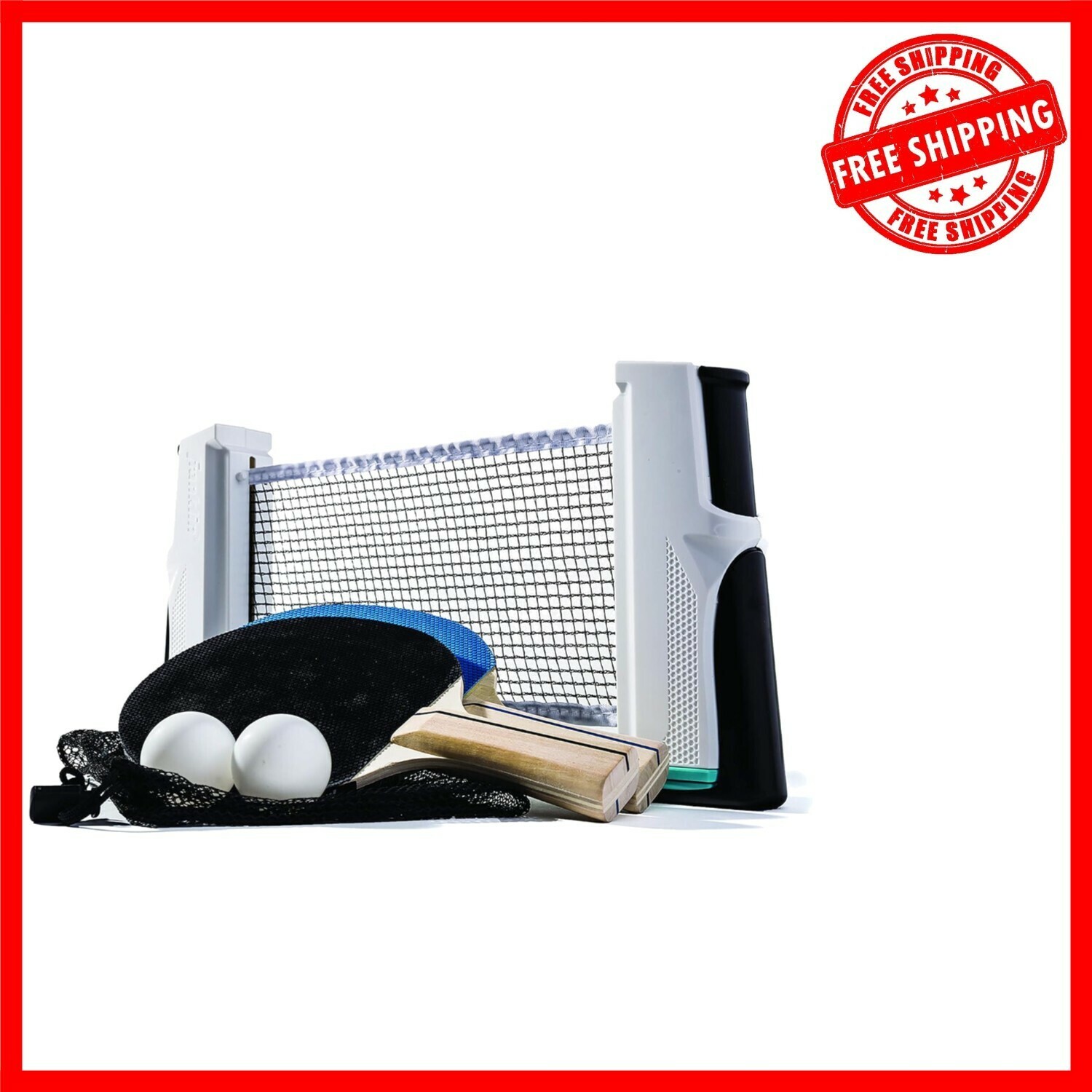 Quick Setup Table Tennis Set: 2 Paddles, 2 Balls Adjustable Retractable Net