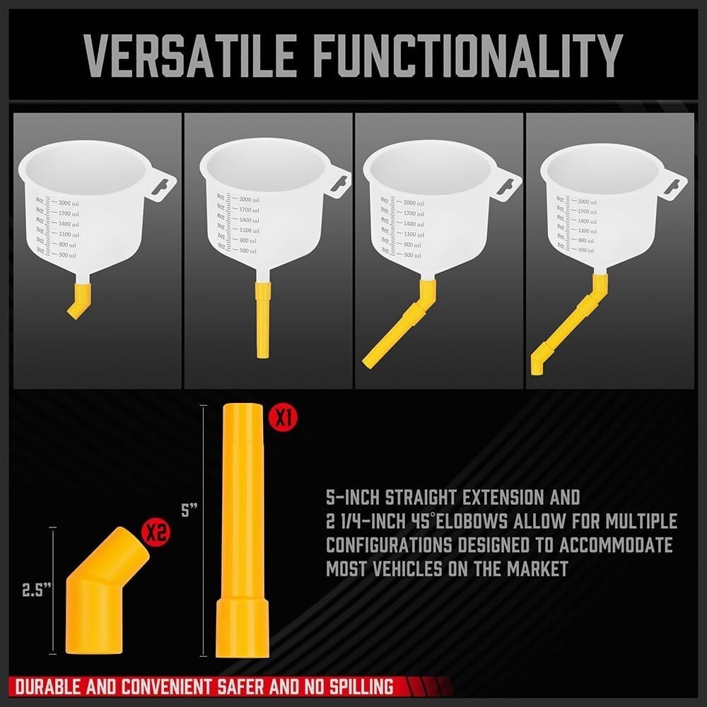 Flexible Extensions: Comes with a 5" straight extension and 2-1/4" 45 elbows that navigate hard-to- areas, adapting to various vehicle configurations with ease.