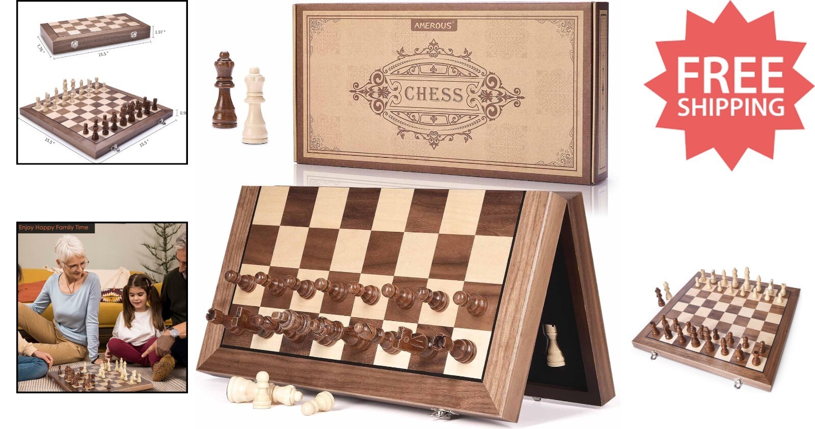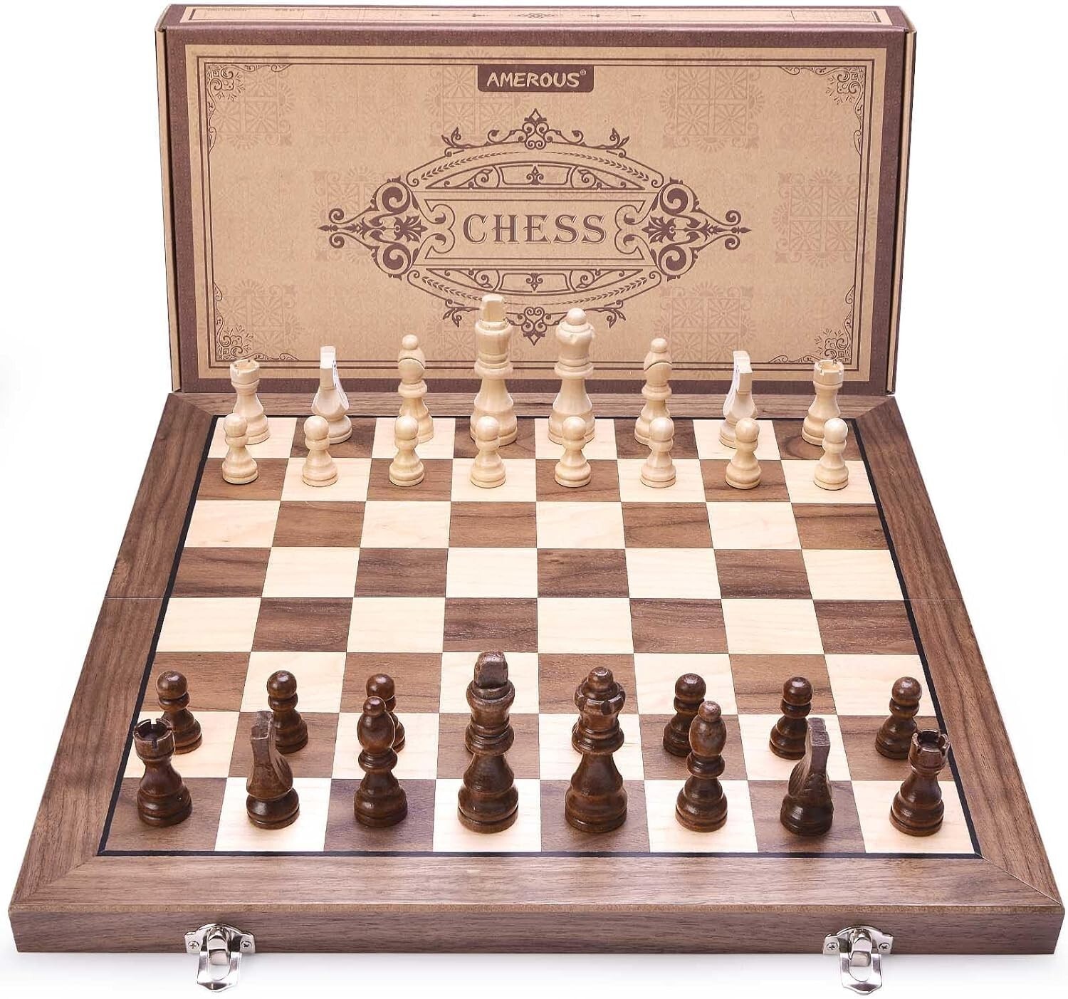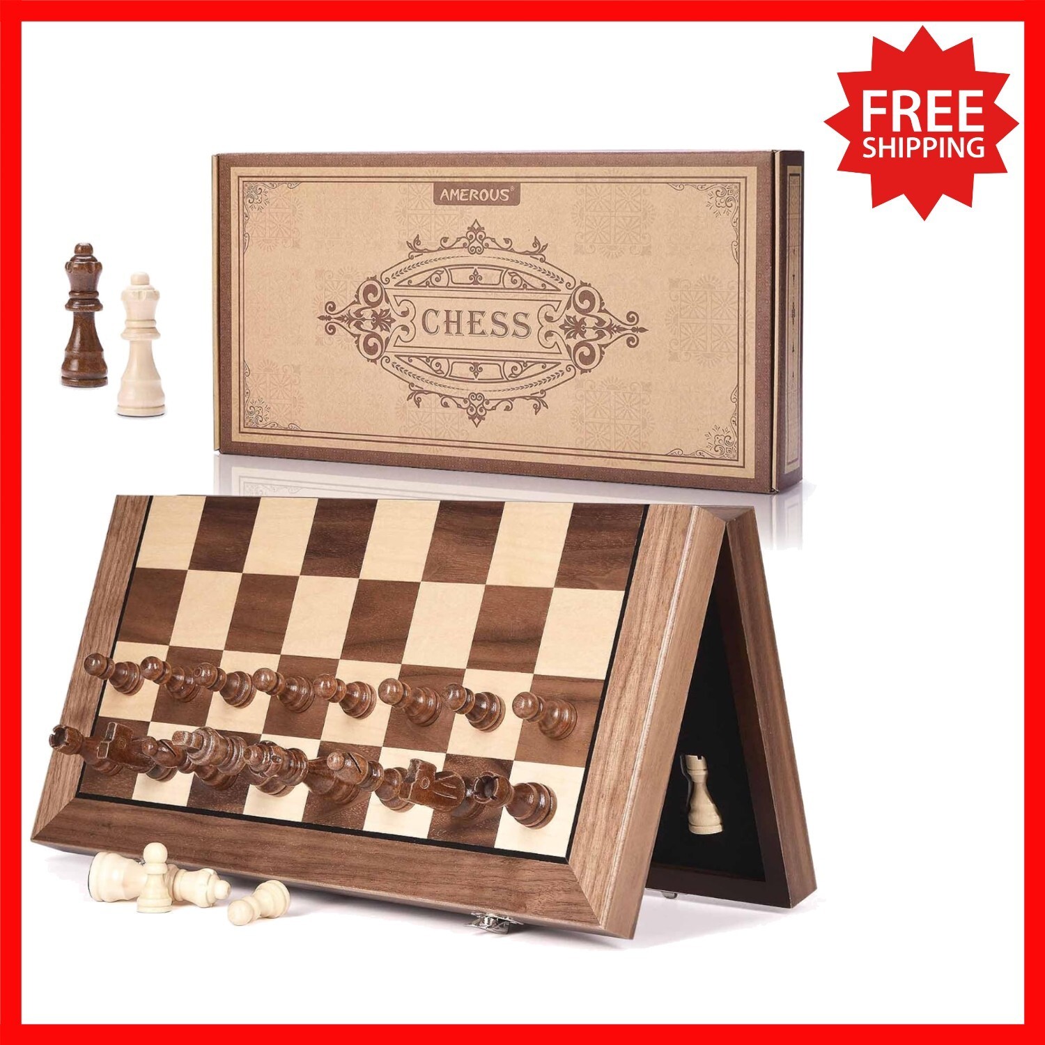 Experience the elegance and durability of the AMEROUS 15.5" Wooden Magnetic Chess Set. Crafted from high-quality natural wood with exquisite craftsmanship, this set offers a smooth surface and sturdy build ideal for both professionals and beginners. The magnetic pieces ensure they stay securely in place, making it perfect for travel or casual play. Its classic design and neatly organized storage slots make it a stylish and convenient addition to any game collection. Enhance your strategic thinking, concentration, and creativity while enjoying a sophisticated game piece. Whether at home or on the go, this portable, silent chess set is an excellent gift choice for chess enthusiasts of all ages.