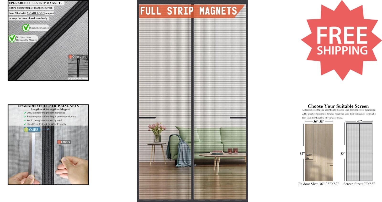 Wind Protection: Features unique reinforcement design and added bottom sticks to prevent the door from blowing open even in gusty winds.