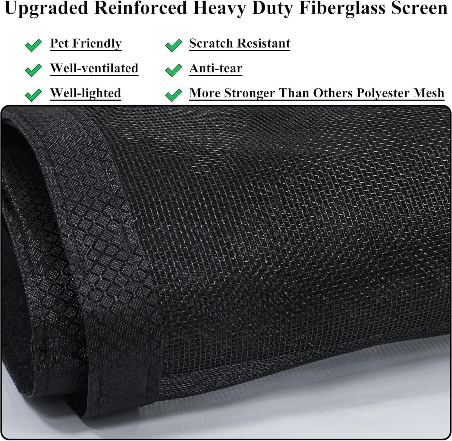 Heavy Duty Fiberglass Mesh: Our upgraded mesh is tear-proof, well-ventilated, lightweight, fireproof, and corrosion-resistant, making it ten times stronger than traditional polyester screens.