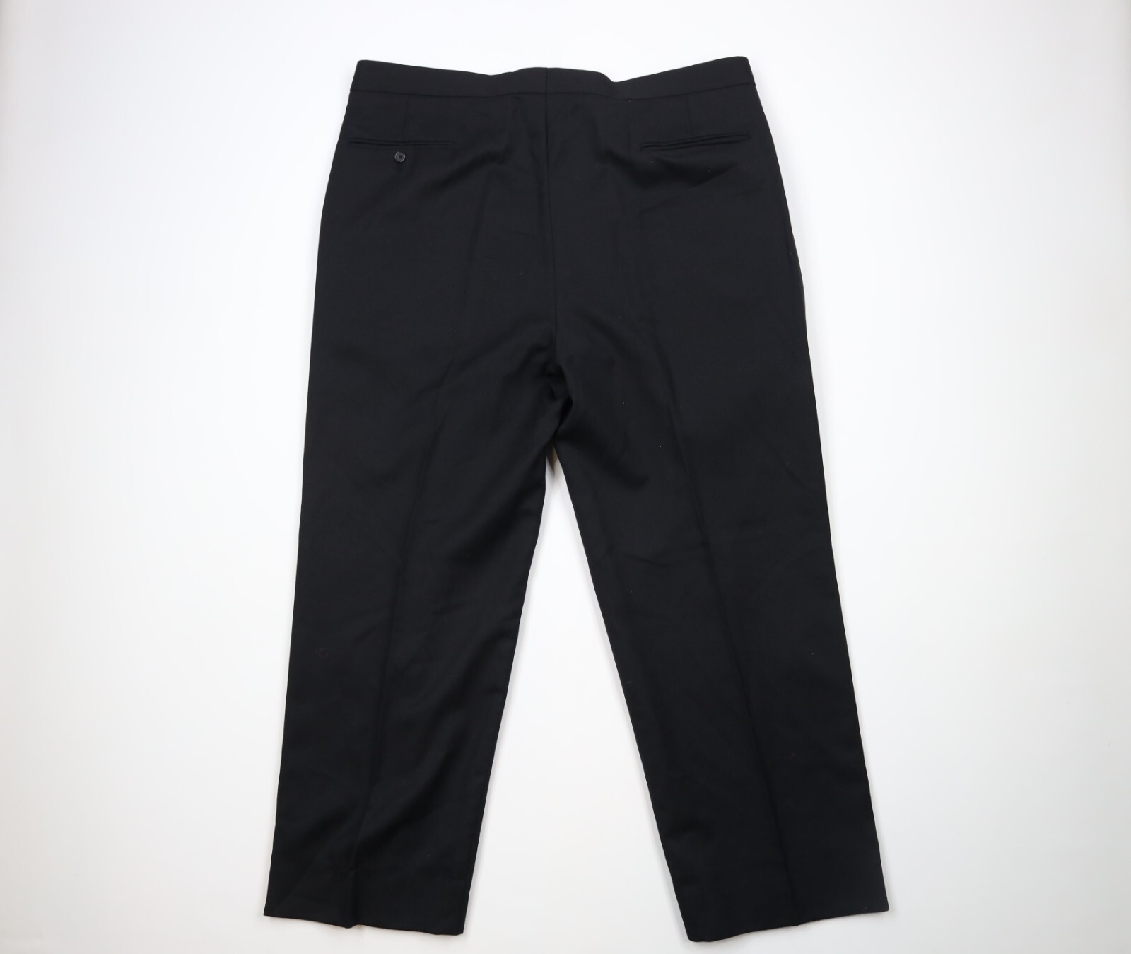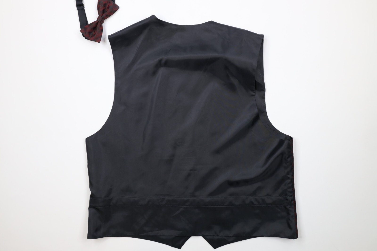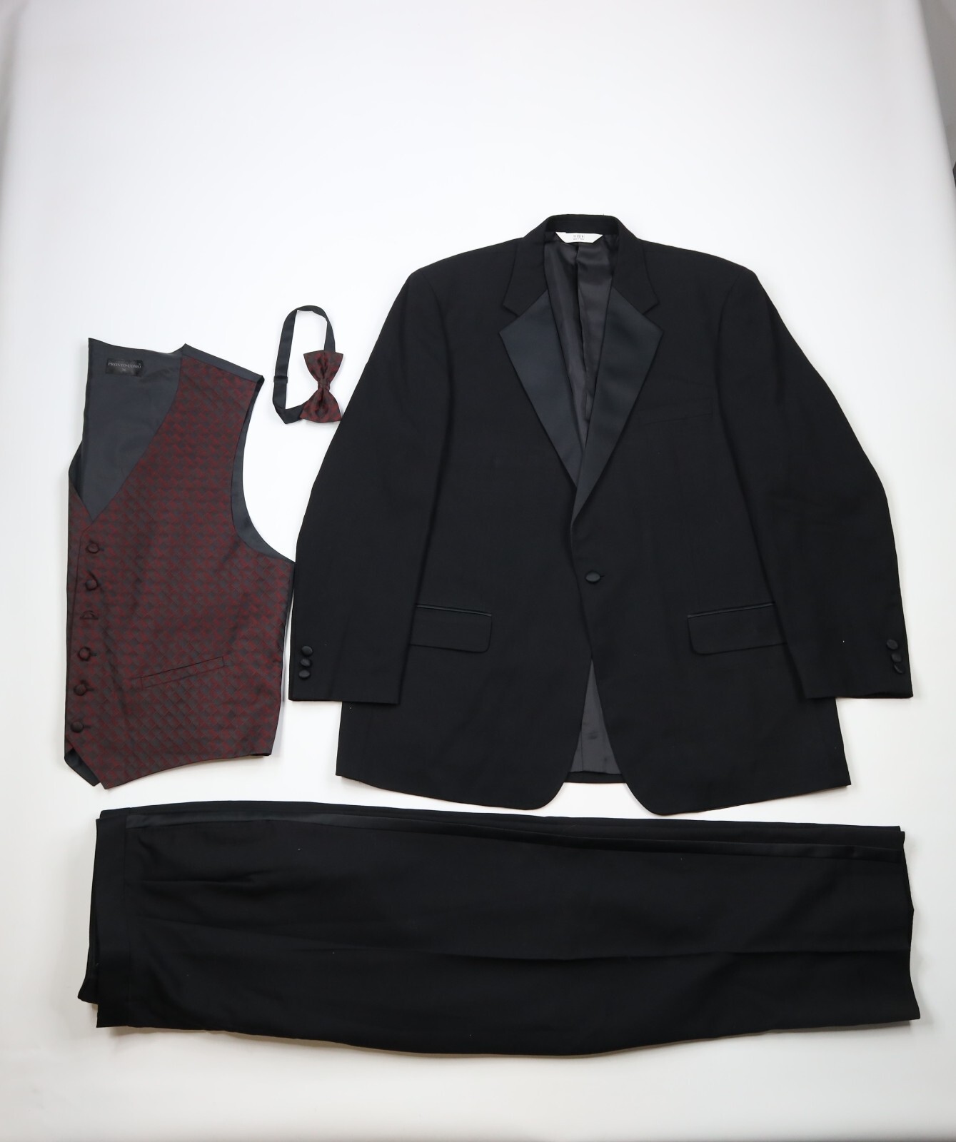 Vintage Mens 46L 4 Piece Wool Satin Striped Tuxedo Suit Bow Tie Vest Black 41x29