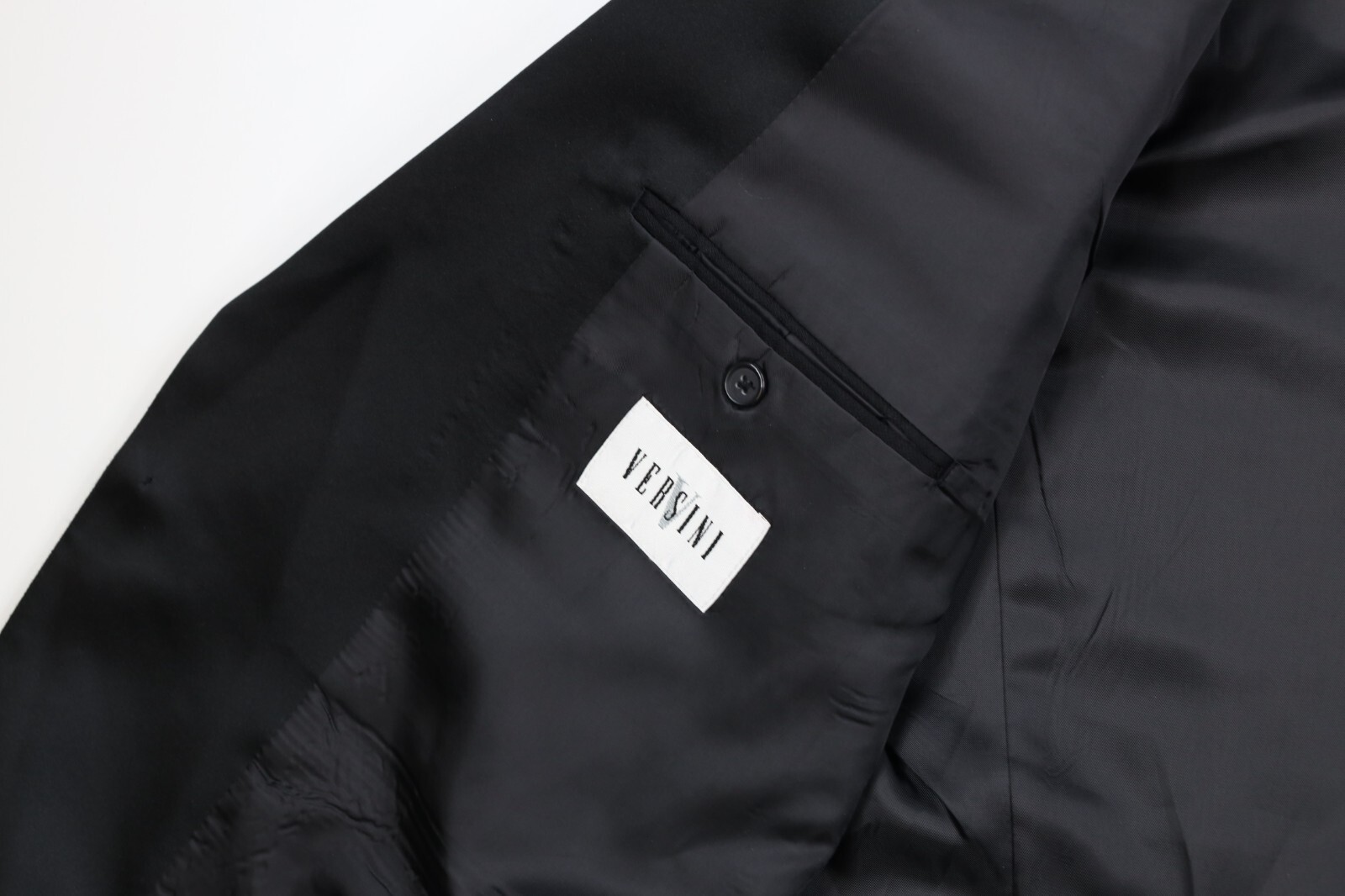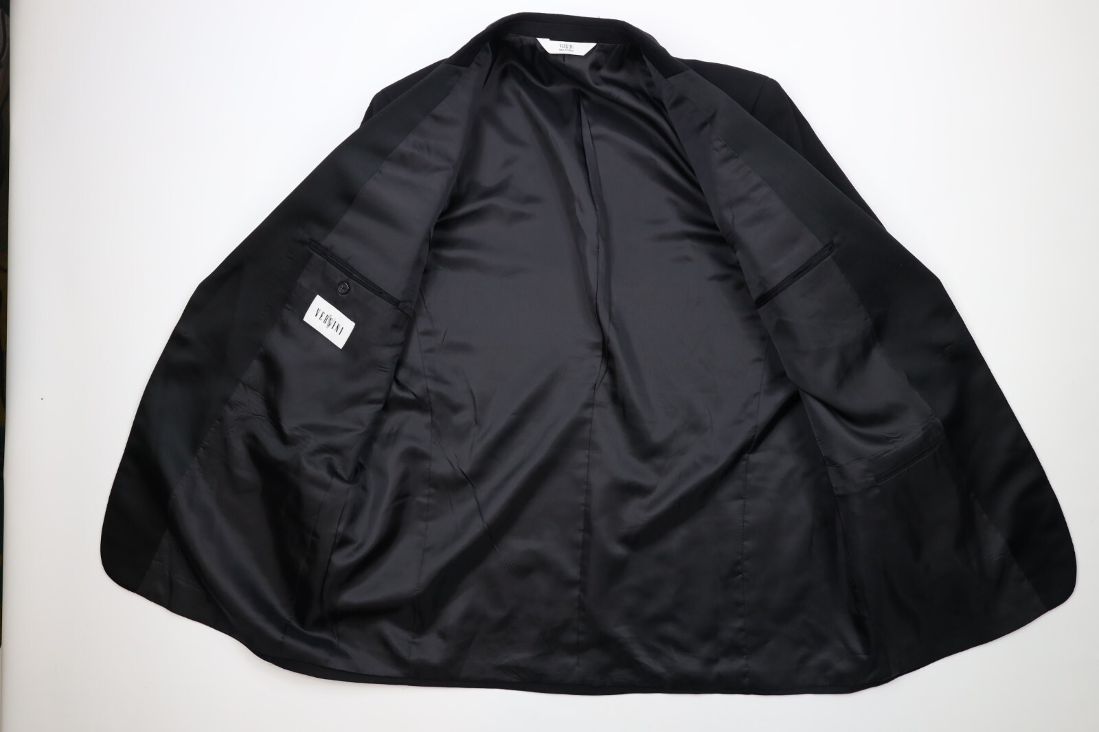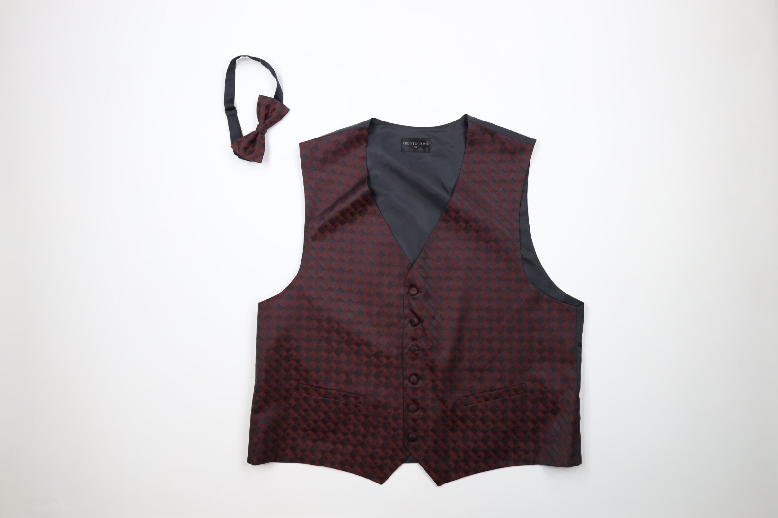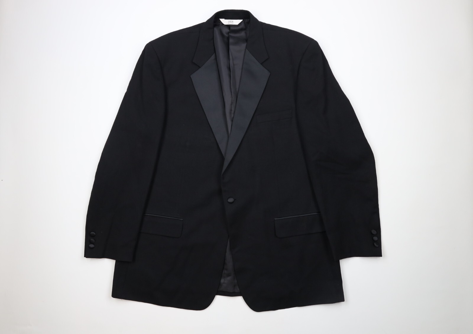 Vintage Mens 46L 4 Piece Wool Satin Striped Tuxedo Suit Bow Tie Vest Black 41x29