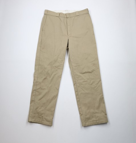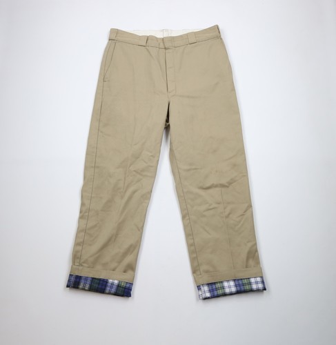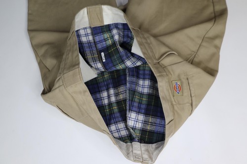 Vtg 90s Dickies Mens 36x32 Distressed Flannel Lined Wide Leg Work Pants Beige