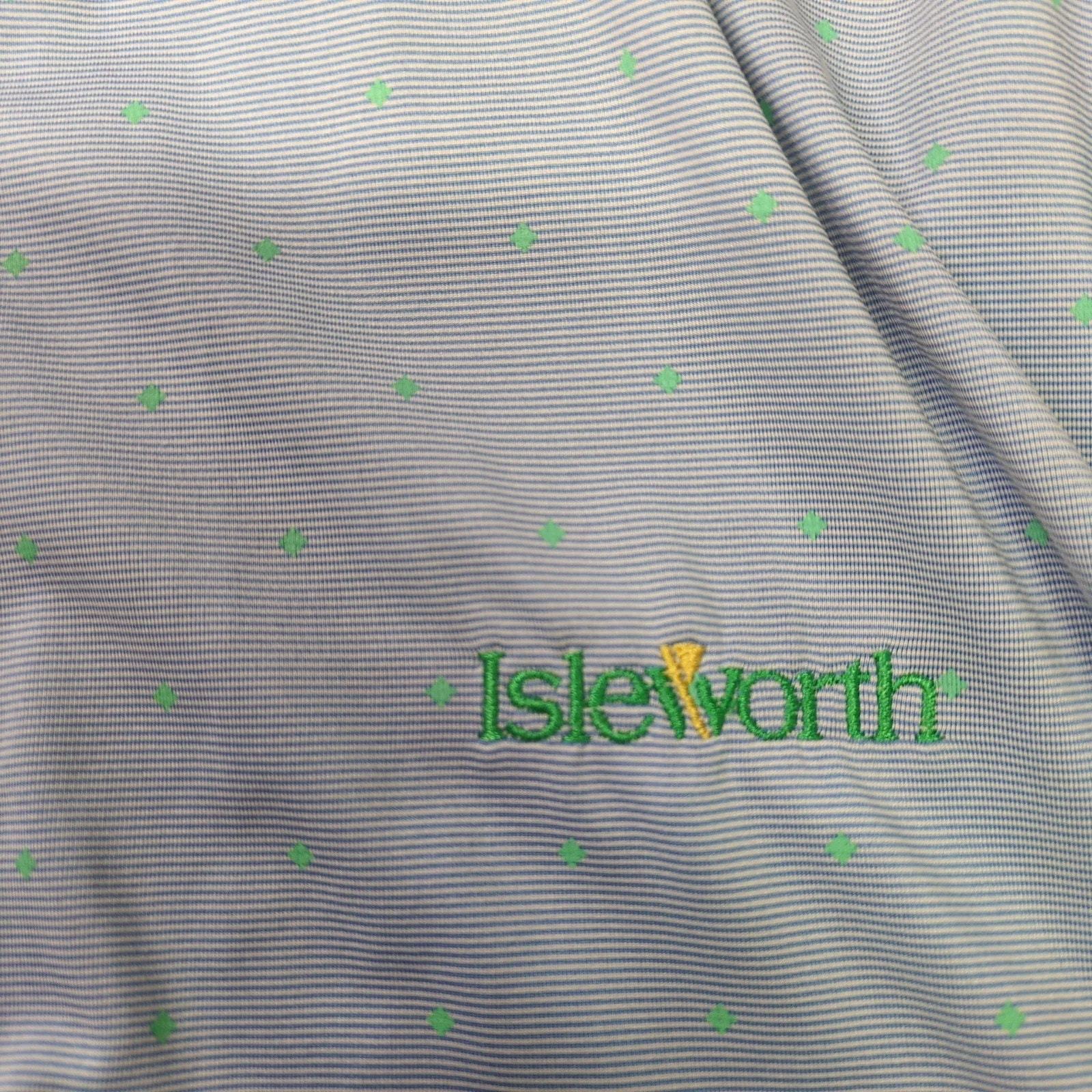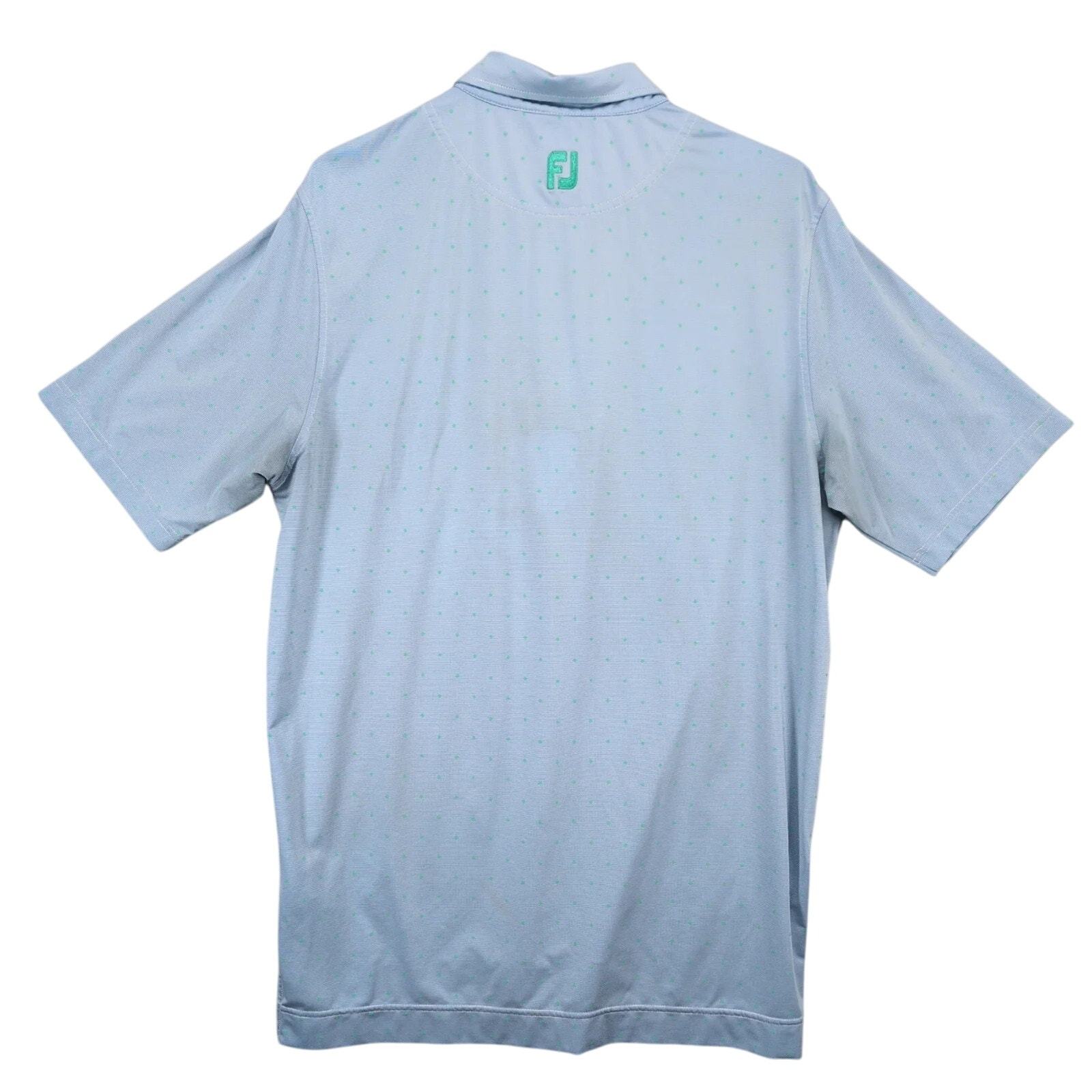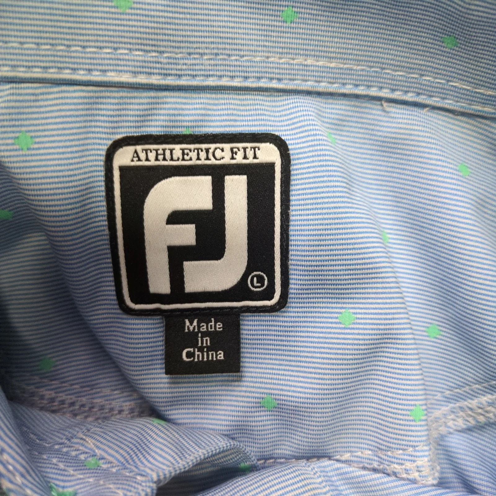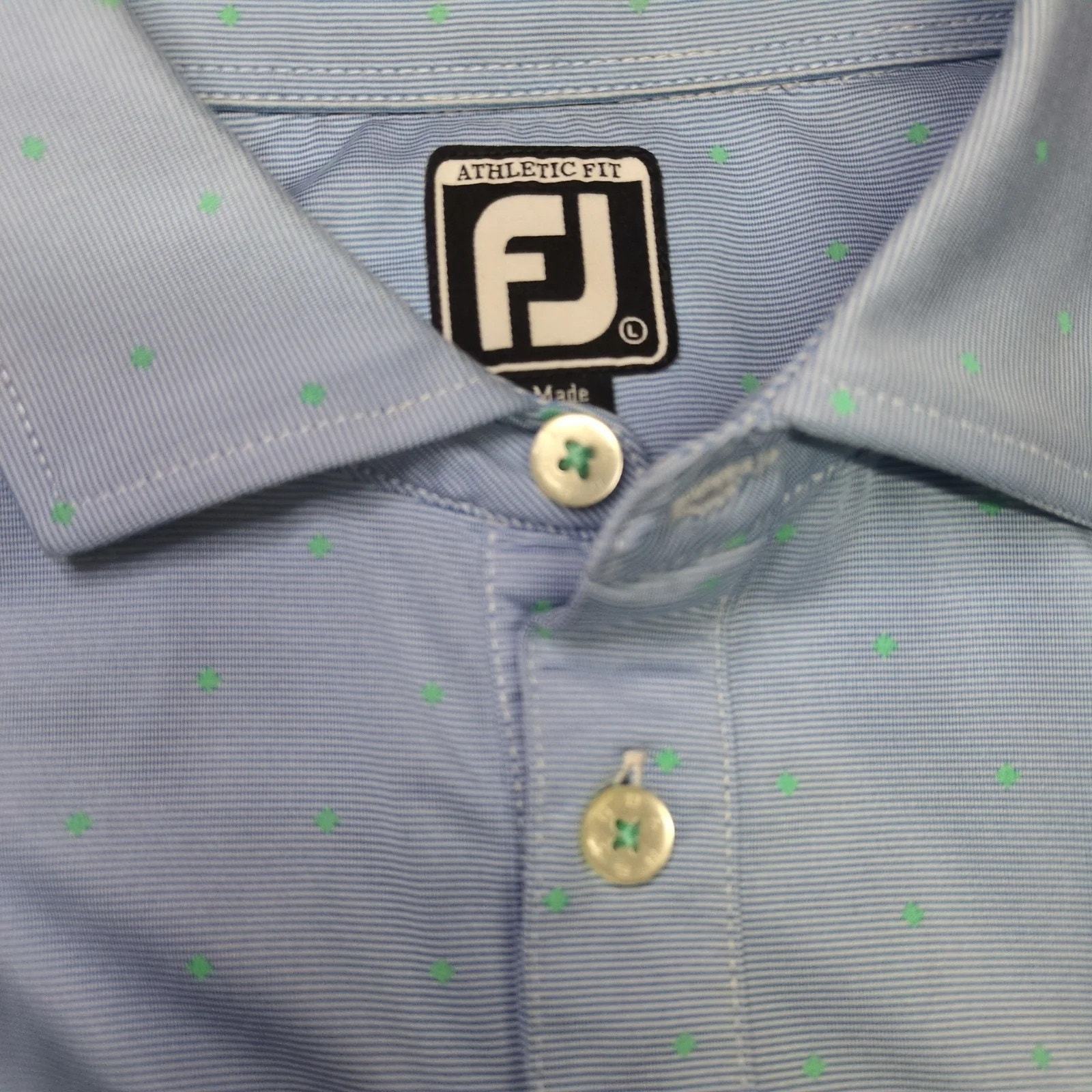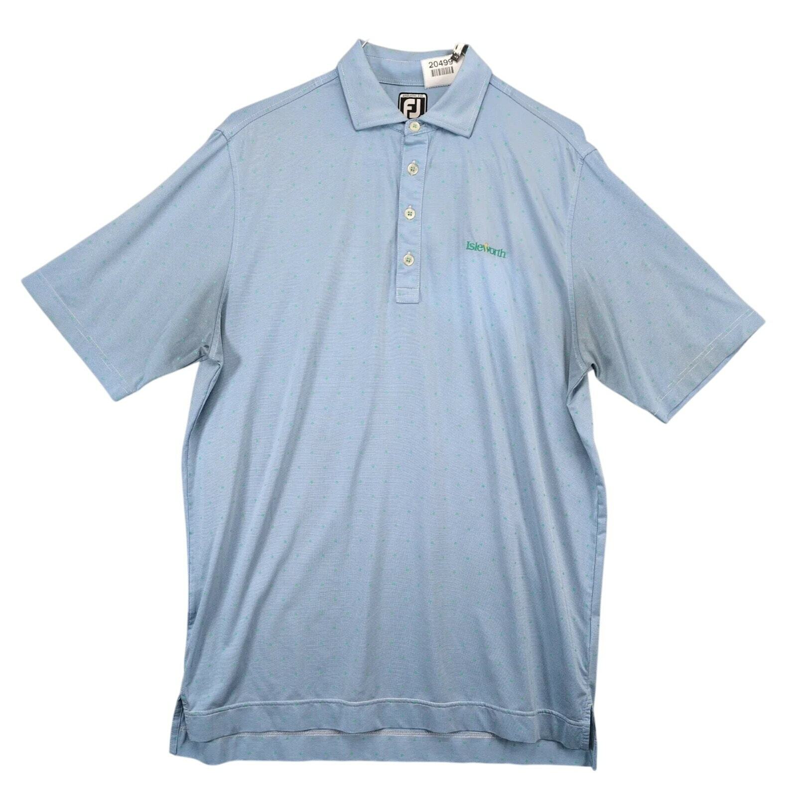 Footjoy Men's L Polo Shirt Athletic Fit Isleworth Golf Club Blue Green Dots Logo