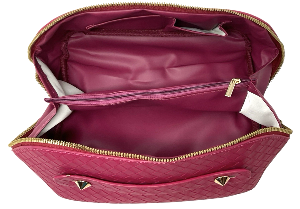 Large Capacity – Two roomy compartments with zippered dividers and elastic slots for brushes, lipsticks, and more.