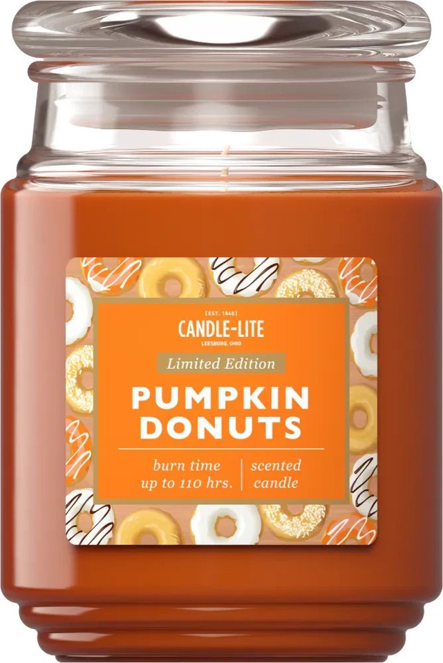 Candle-Lite 18oz Limited Edition Pumpkin Donuts Scented Candle Jar, up to 110hrs