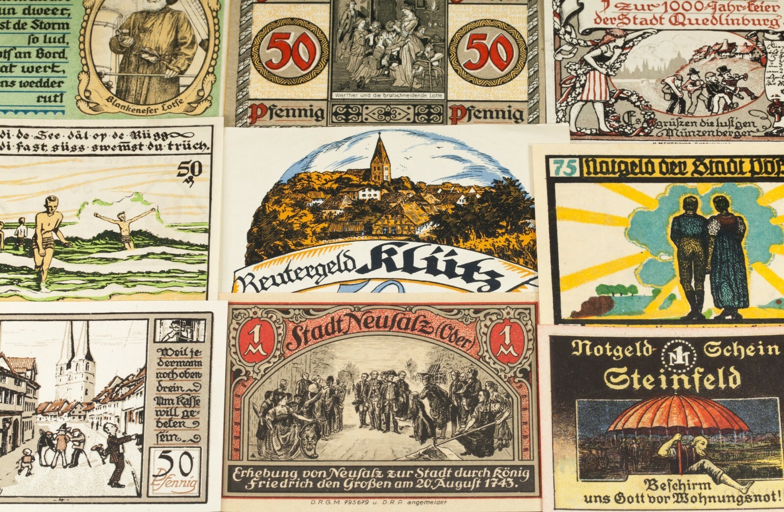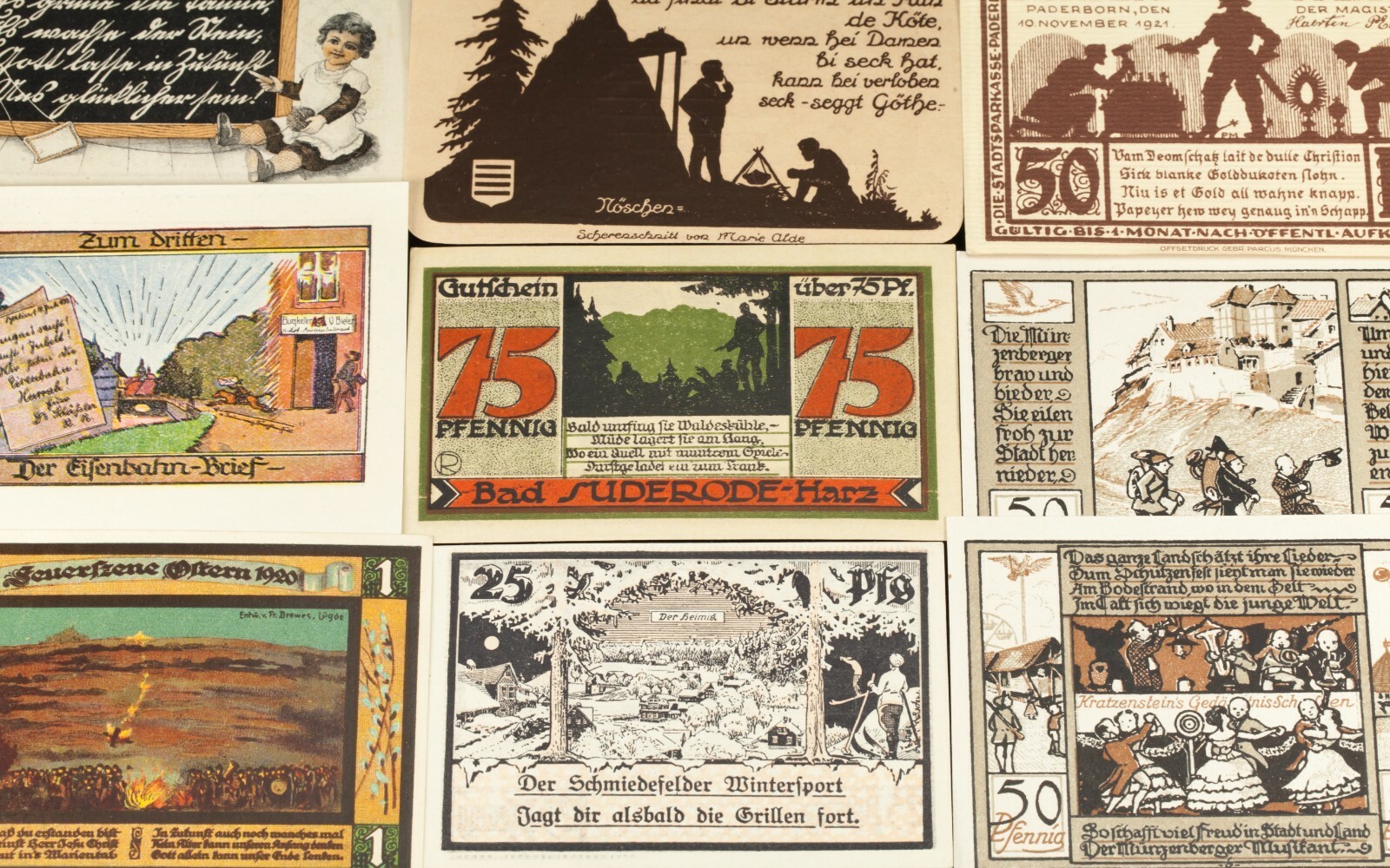 Ce lot comprendra 25 notes de notgeld individuelles d'Allemagne apres la Premiere Guerre mondiale. Valeurs faciales entre 5 pfennig a 5 marque. Theme des gens; groupes et individus.