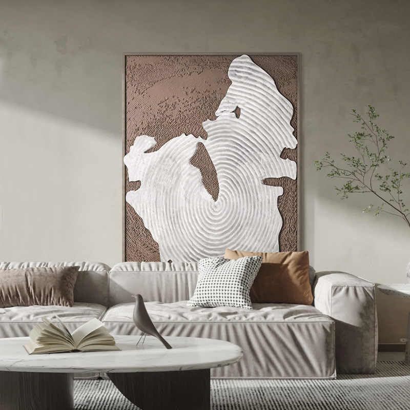 interoknack Minimalist 3D Sculpted Wall Art Oversized Hand-Painted Textured Oi