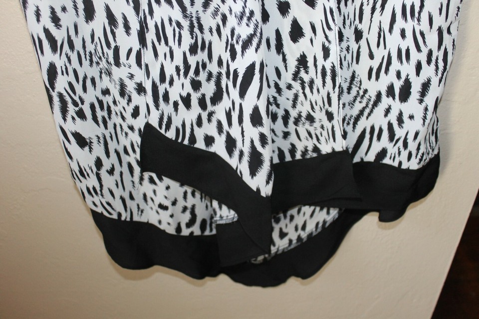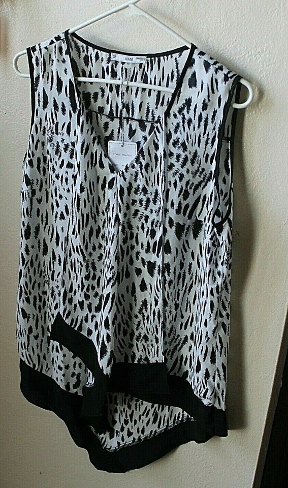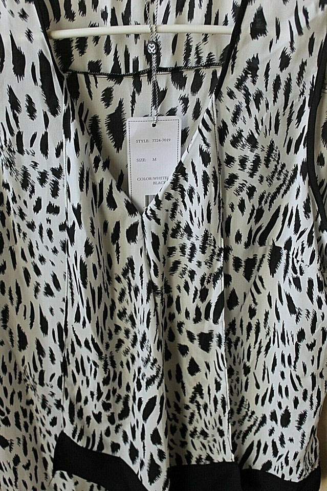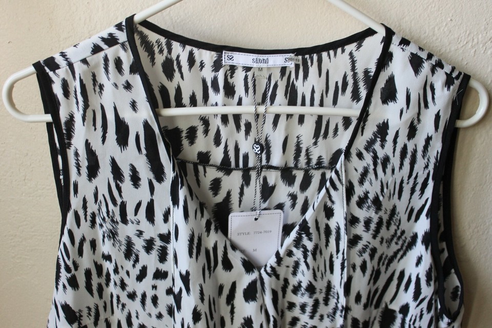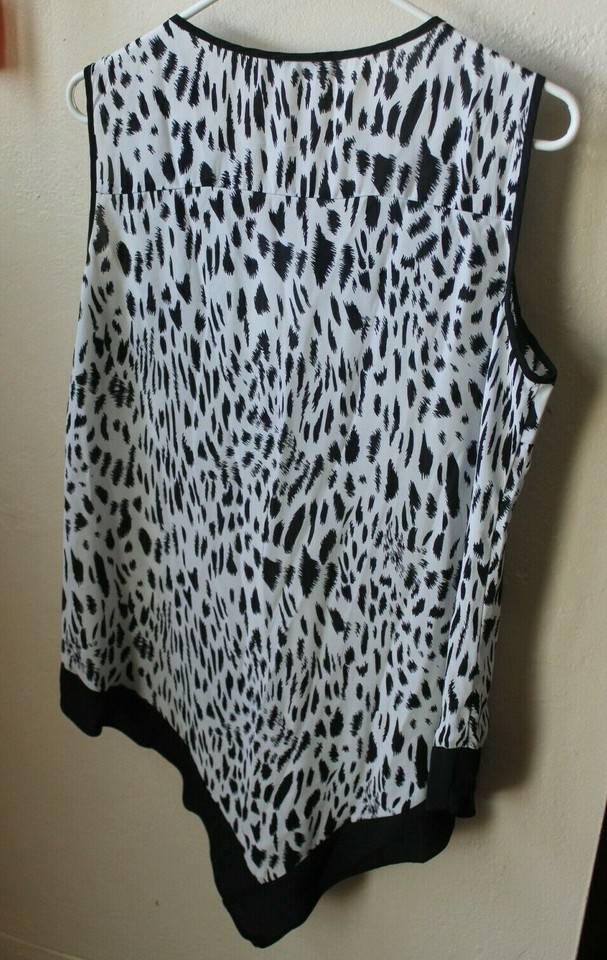 S/i/o/n/i Women's V-Neck Animal Print Black White Sleeveless Tunic Blouse Size MED
