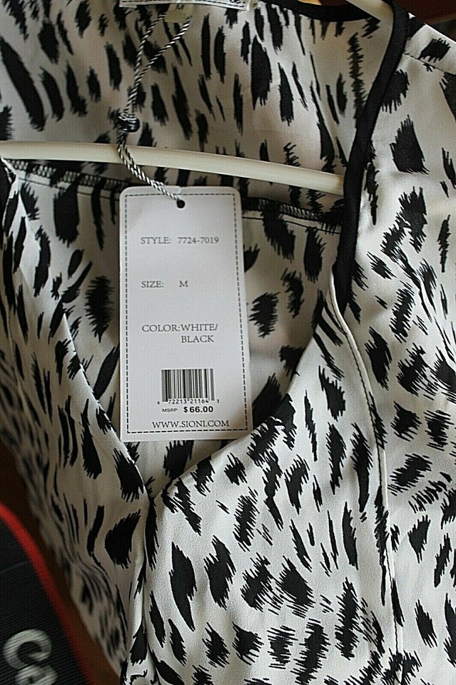 S/i/o/n/i Women's V-Neck Animal Print Black & White Sleeveless Tunic Blouse SZ M