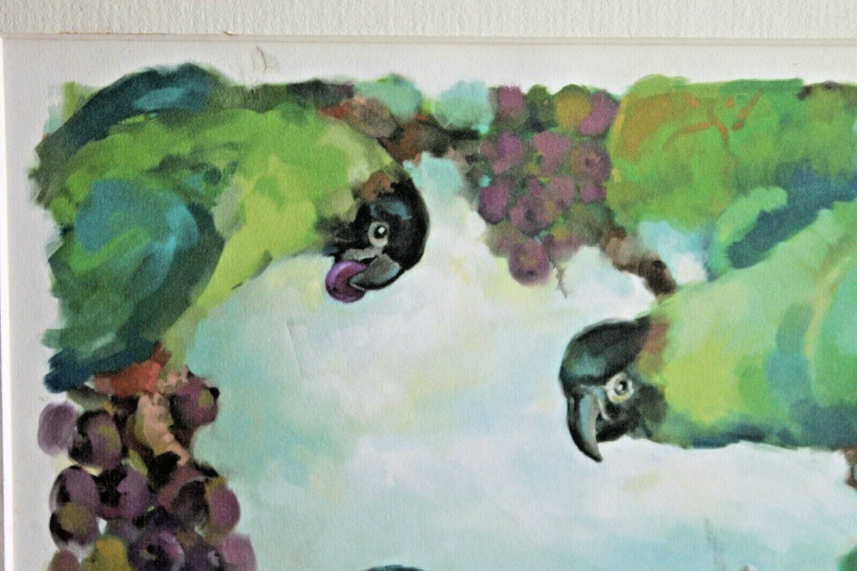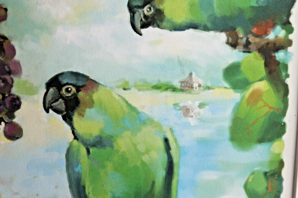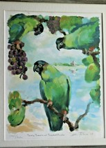 Watercolor Green Parakeets Birds "Tasty Treats at TradeWinds" LIM ED Signed