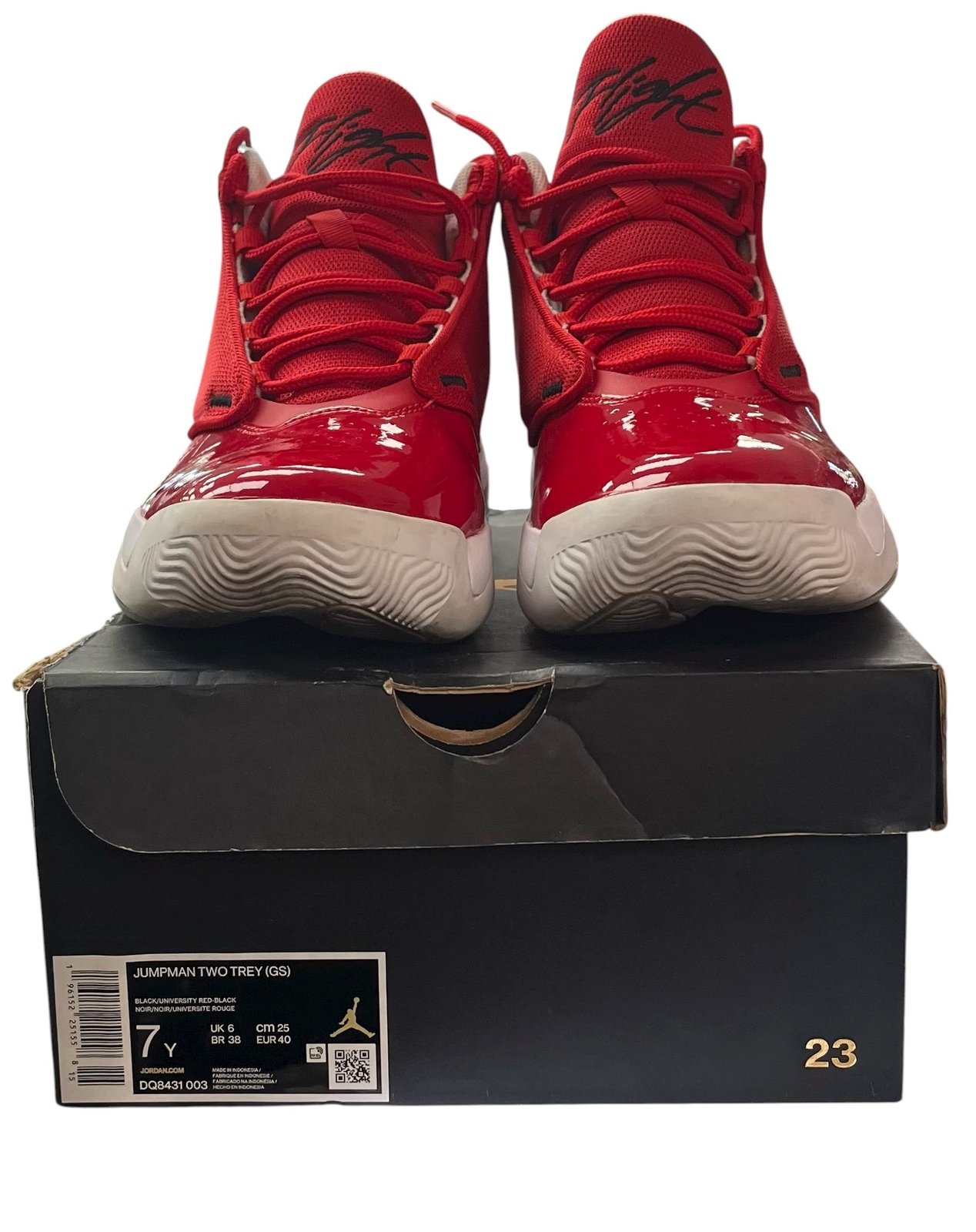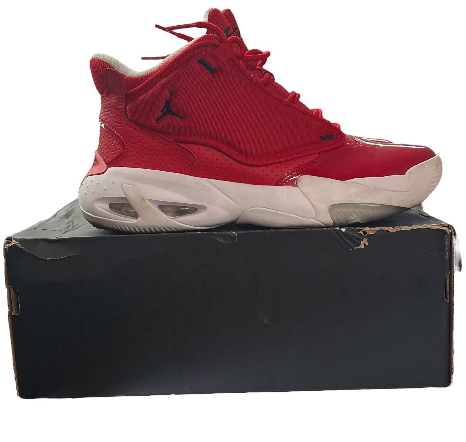 Type: ShoesBrand: JordanModel name: Jumpman Max Aura 4Model number: DQ8404-601Color: University Red/White/BlackSize: 7yBox included: yesCondition:UsedNotes:Not in Original Box