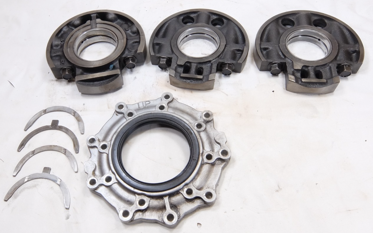 This is a used set of main bearing case assemblies with the cover that was removed from the tractor below. The following items are included in this offering --
