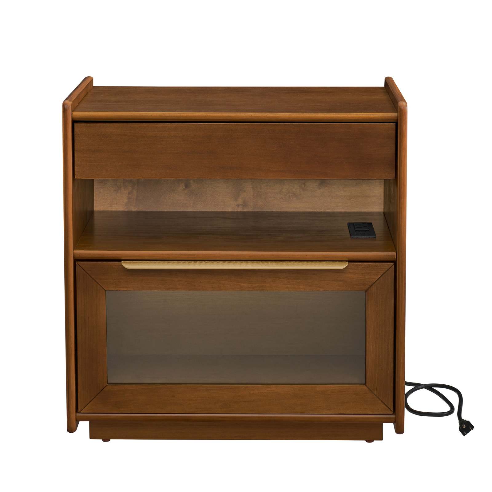 [ Mid Century Modern Look ] - Elegant wood grain, smooth lines, retro colors and glass drawer design combine to create a retro and sophisticated appearance. Its unique shape adds a touch of beauty, and its understated color palette blends effortlessly into a variety of styles.